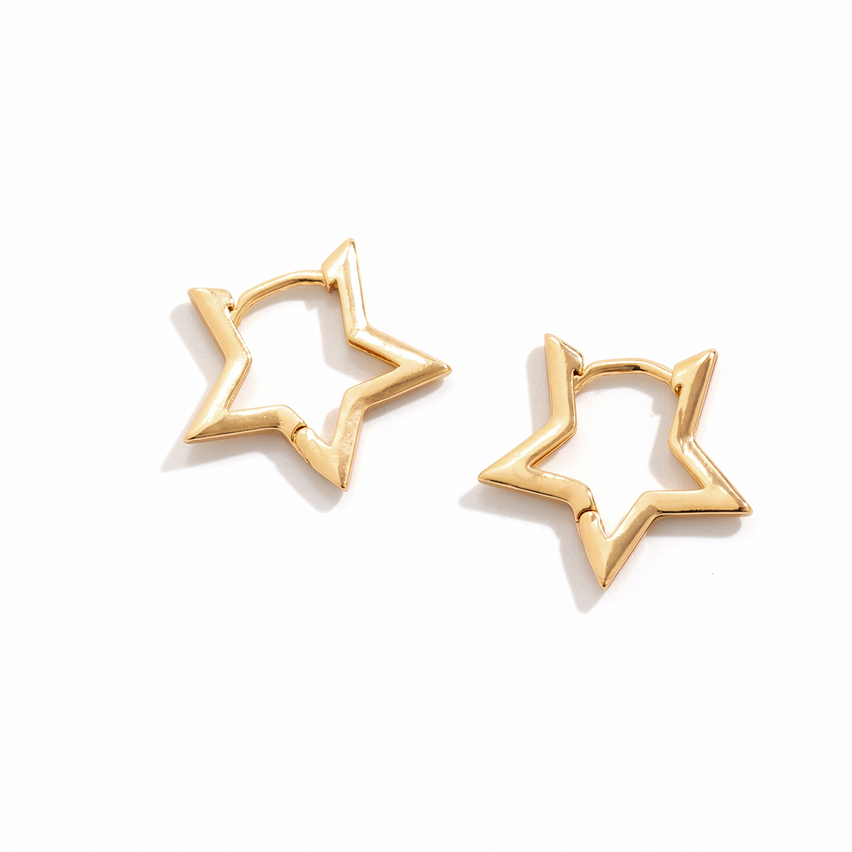 Fleepmart Korean Simple Glossy Metal Star Hoop Earrings Fashion Statement Small Earrings Women’s Exquisite Party Jewelry Gift