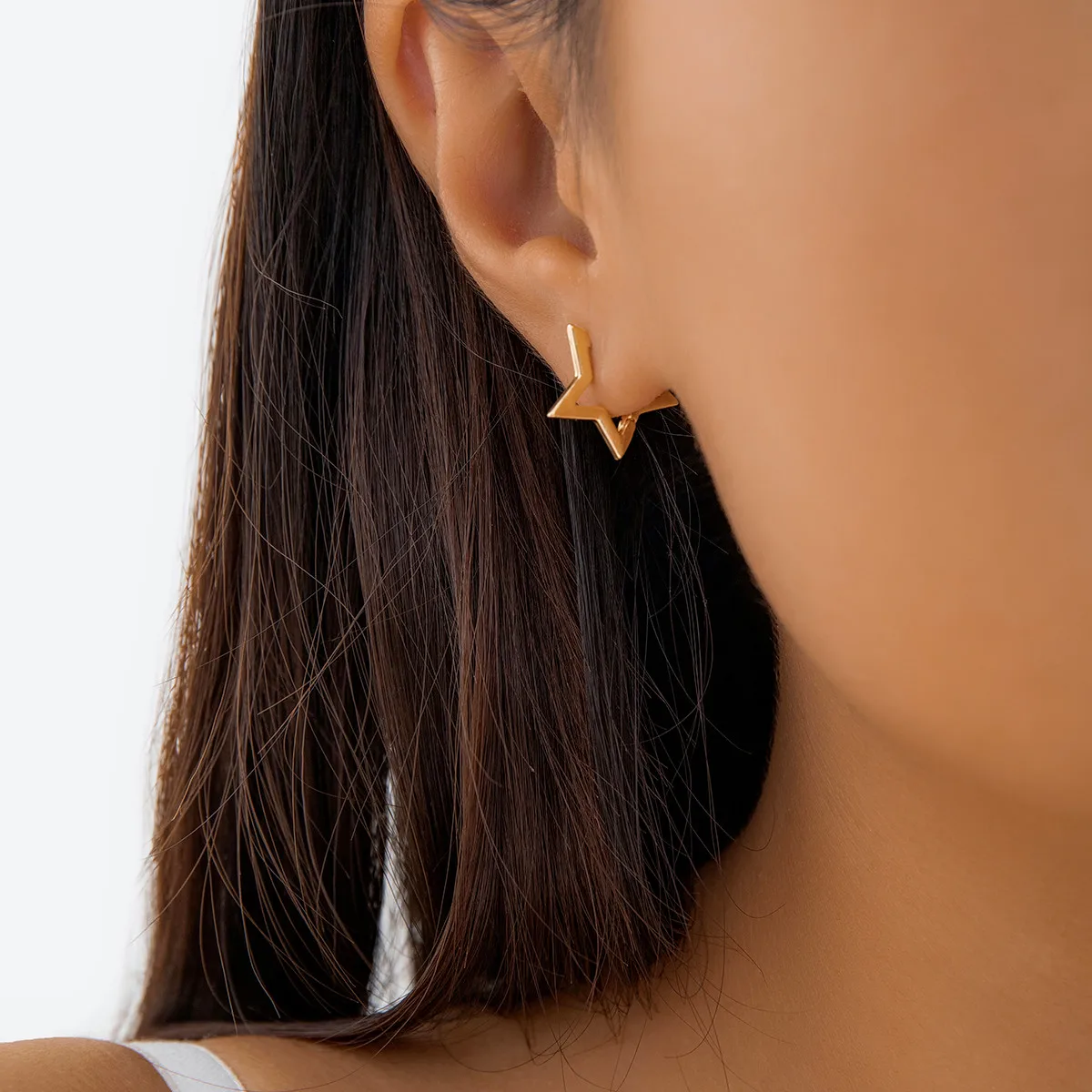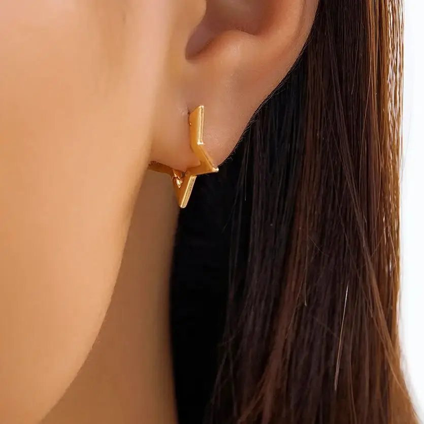 Fleepmart Korean Simple Glossy Metal Star Hoop Earrings Fashion Statement Small Earrings Women’s Exquisite Party Jewelry Gift