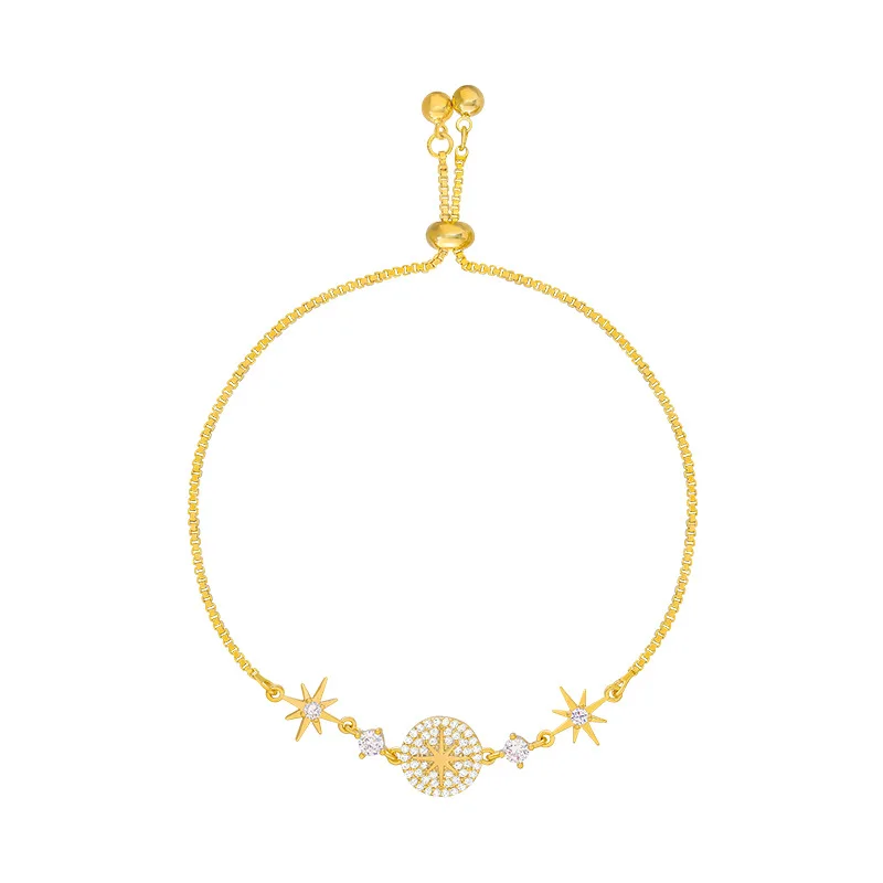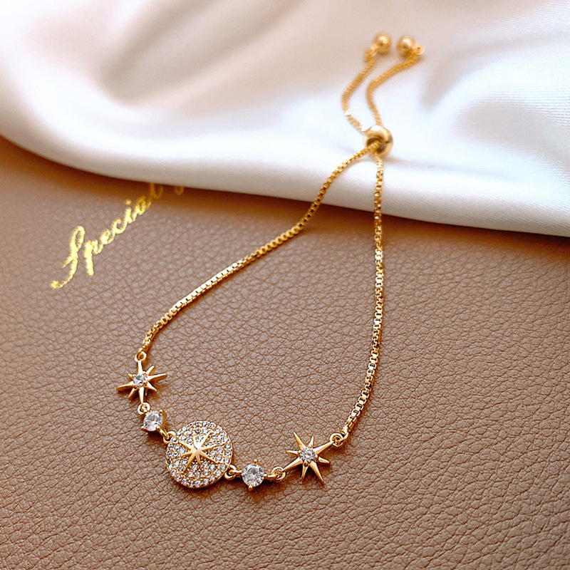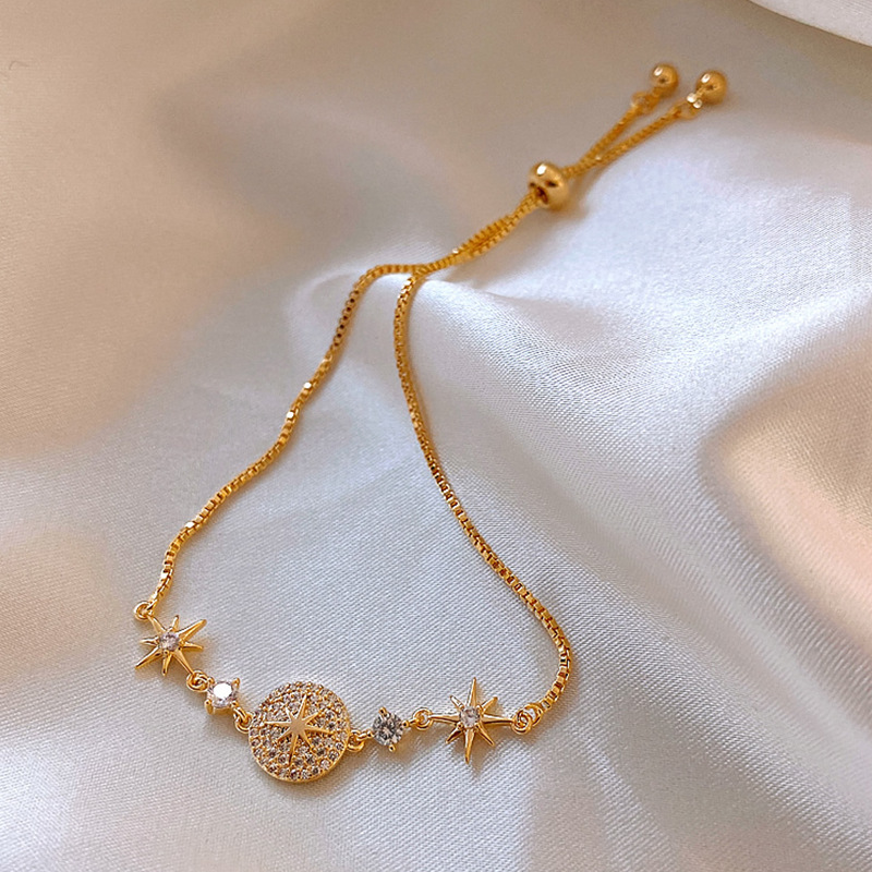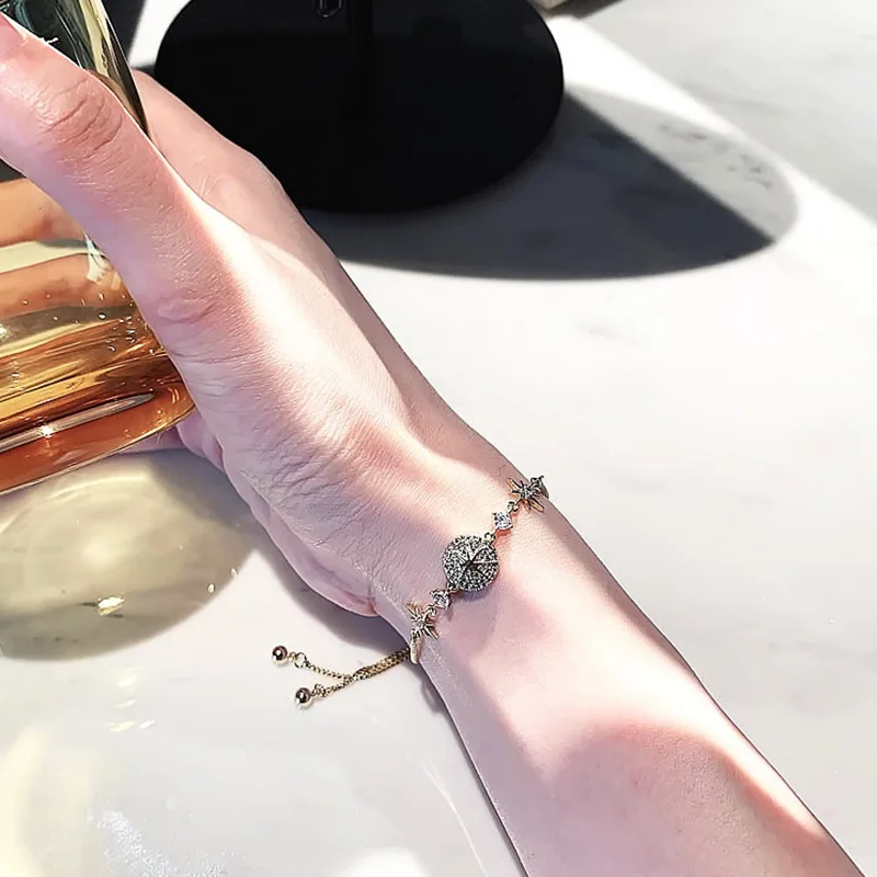 Fleepmart Korean Sweet Bling Bling Rhinestone Six-pointed Star Charm Bracelet for Women Girls Gold Color Metal Crystal Chain Bracelets