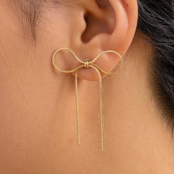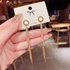 Fleepmart Korean Vintage Glossy Arc Bar Long Tassel Drop Earrings for Women Gold Color Geometric Fashion Jewelry Luxury Hanging Pendientes