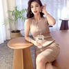 Fleepmart Korean women’s knitted dress, temperament, women’s irregular split hip bag Office Lady Sleeveless Knee-Length