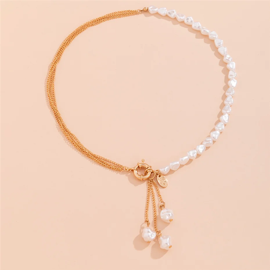Fleepmart Kpop Baroque Irregular Pearl Pendant Necklace for Women Wedding Punk Chest Tassel Chain OT Buckle Choker Party Jewelry