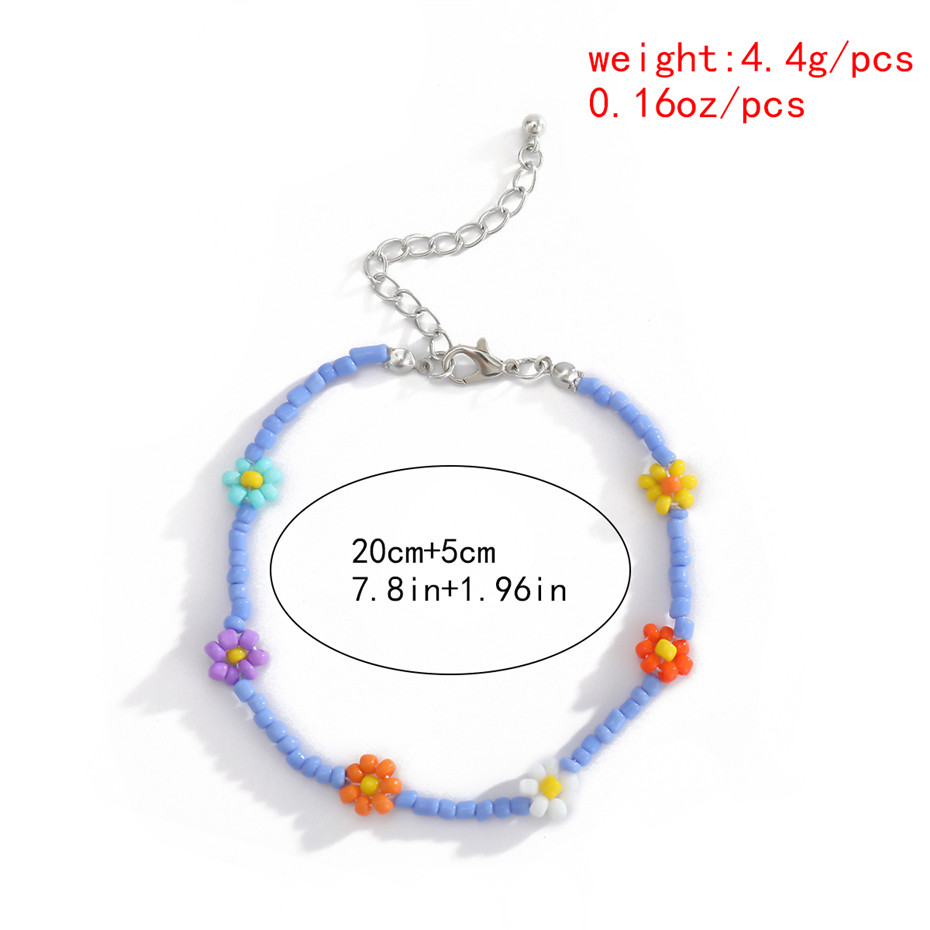 Fleepmart Kpop Flower Anklet Bracelet Women 2020 Fashion Colorful Seed Beads Chain Charm Bracelet On The Leg Boho Jewelry