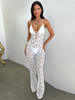 Fleepmart Lace Jumpsuit Rompers 2024 Sexy Women Halter Hollow Out Long Pants Trousers Summer Bodycon Jumpsuit Playsuit