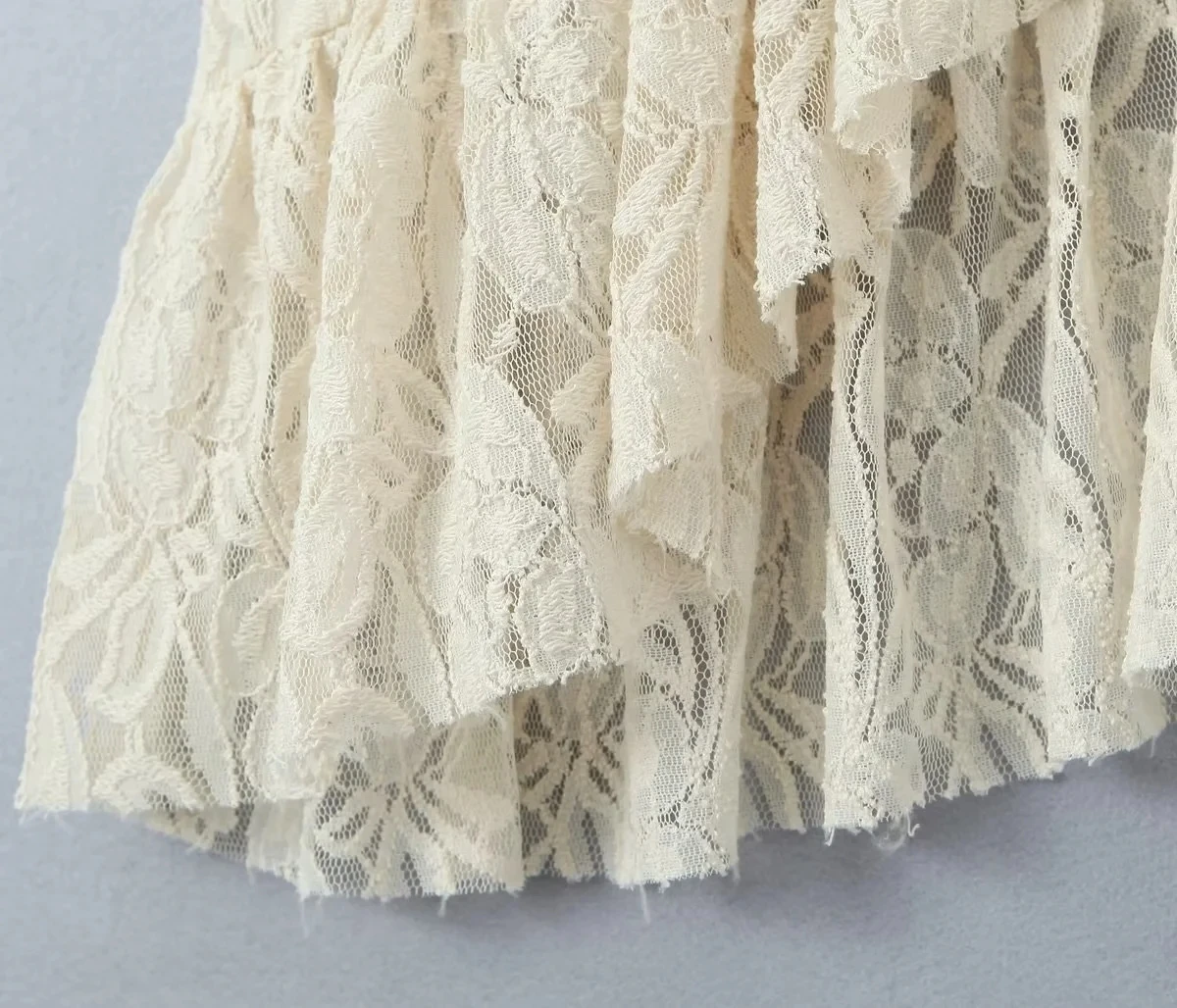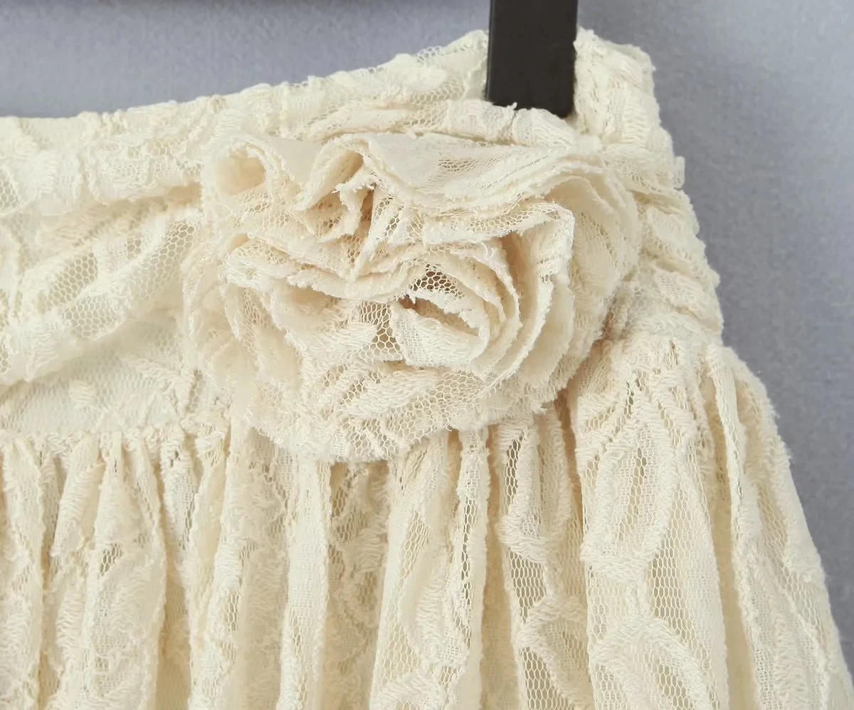 Fleepmart Lace Tierred Long Skirt Big Flower Decor Irregular Maxi Skirt Bottom Apricot Summer Spring Fashion Holiday Party Skirt