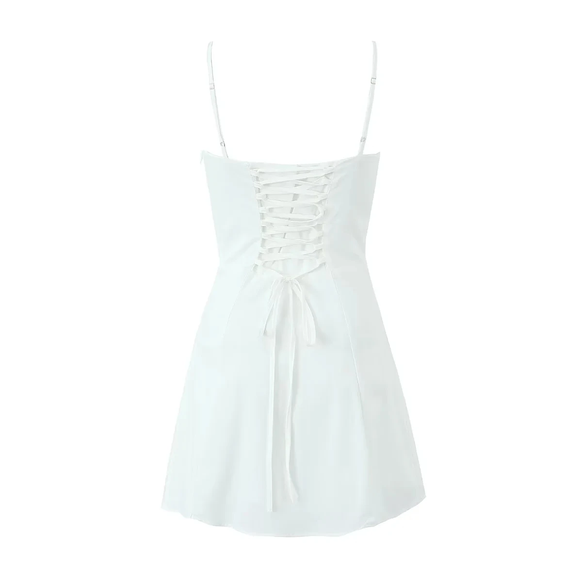 Fleepmart Lace Up Mini Summer Dress Sundress Women Spaghetti Strap Sexy Short White Beach Vestidos Fishbone Party Club Dress 2024