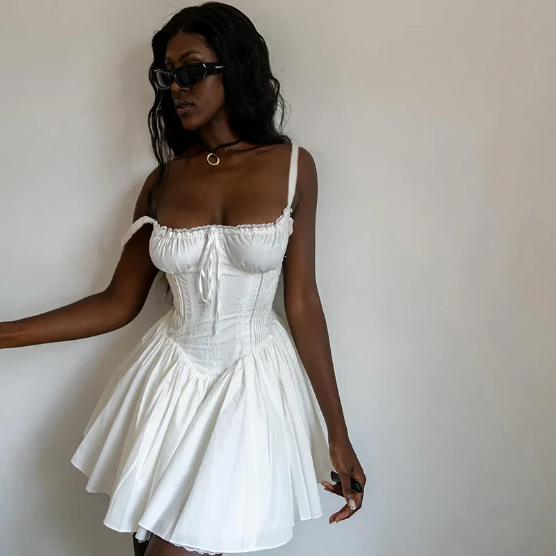 Fleepmart Lace Up Ruffle Backless Sexy Dresses Women 2024 Robes Elegant Evening Party Dress Bodycon Mini Summer Dress Vestidos