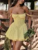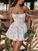 Fleepmart Lace Up Ruffle Backless Sexy Dresses Women 2024 Robes Elegant Evening Party Dress Bodycon Mini Summer Dress Vestidos