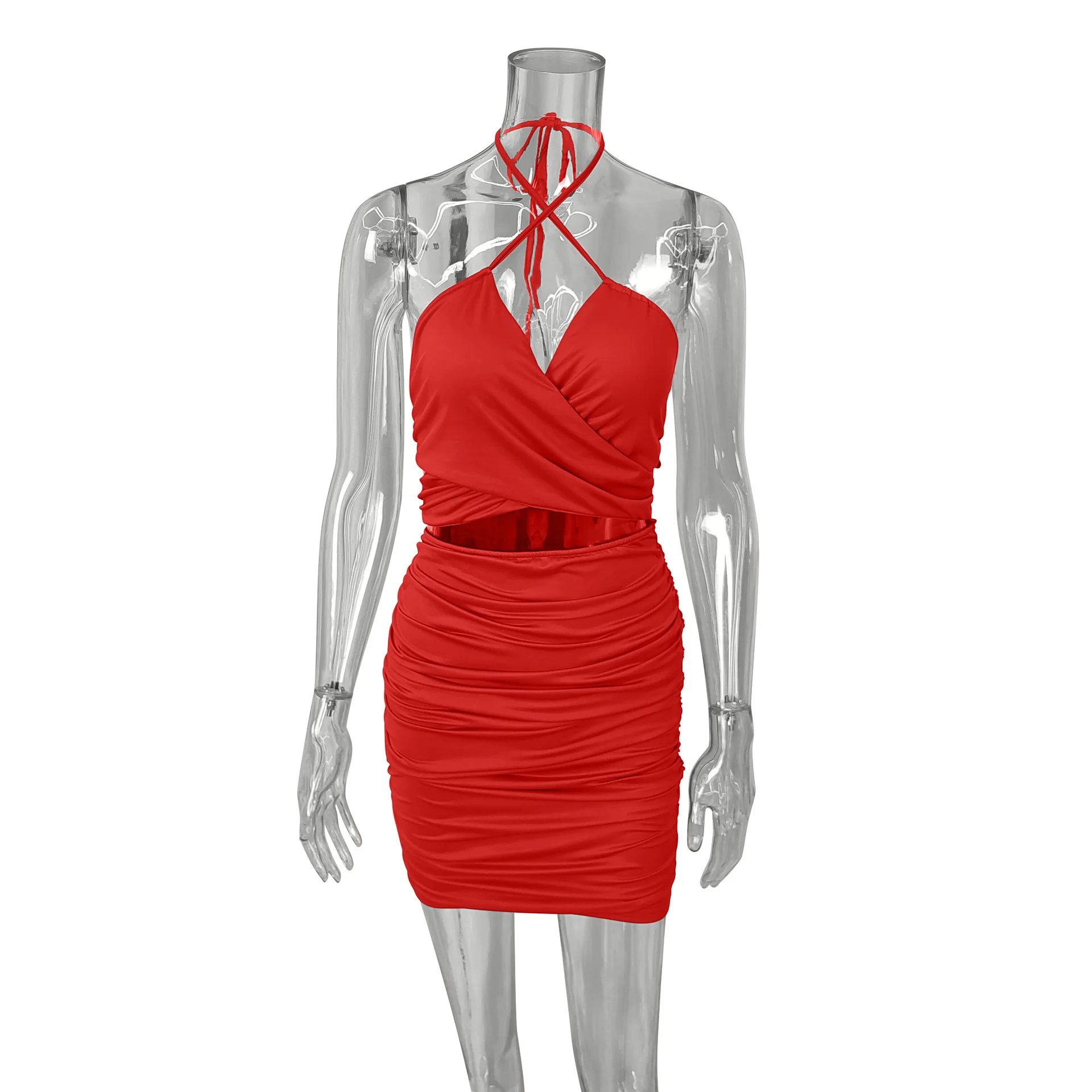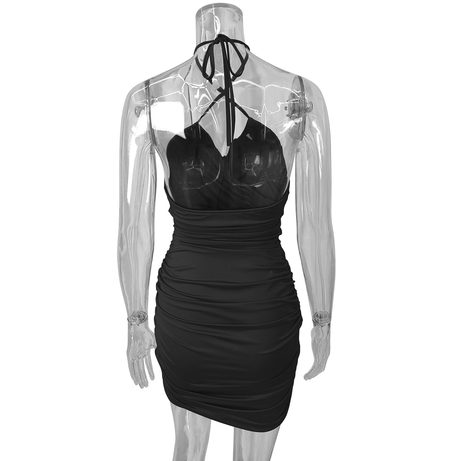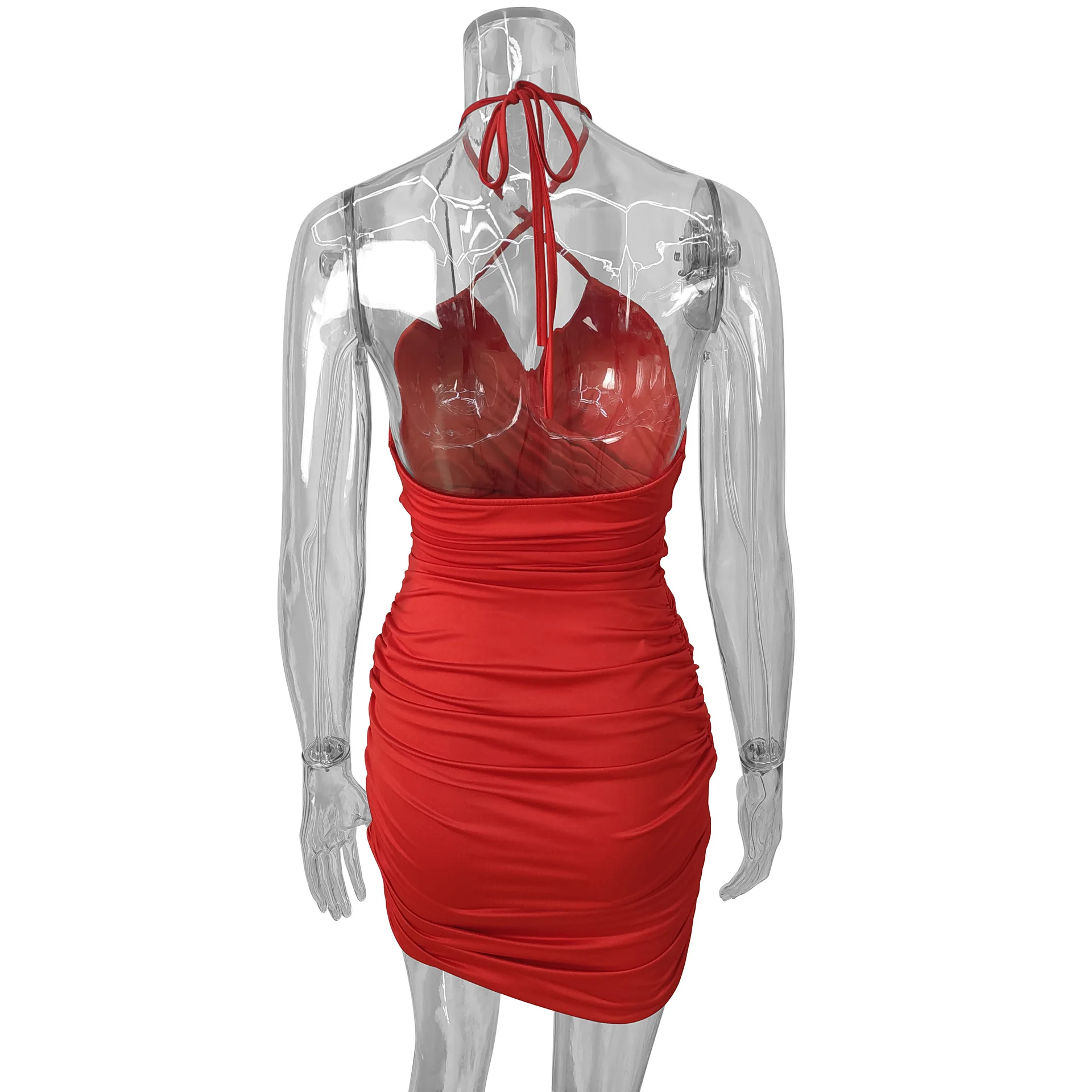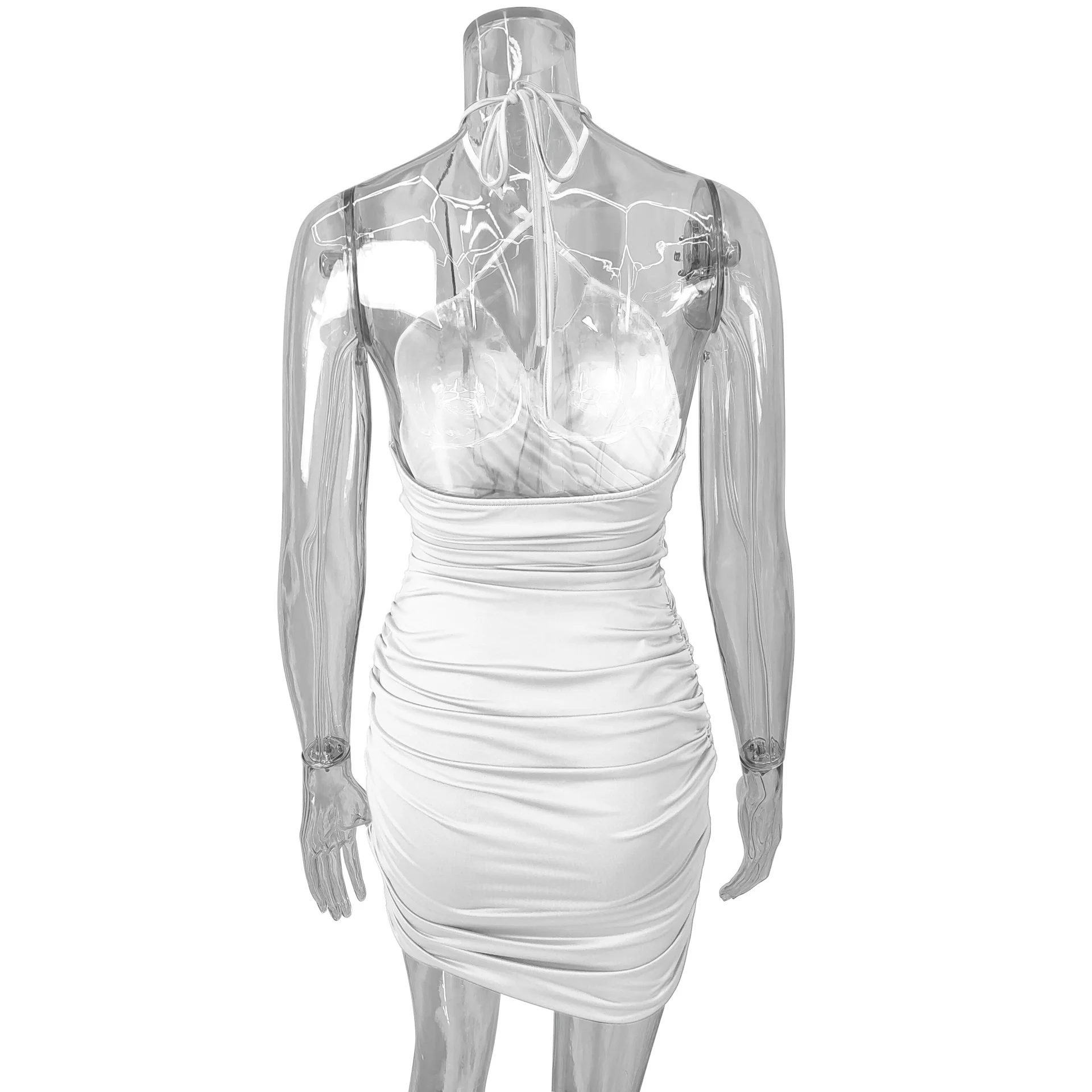 Fleepmart Lace Up V Neck Summer Dresses Ruched Bandage Hot Sexy Club Night Birthday Outfit Women Skinny Mini Party Dress