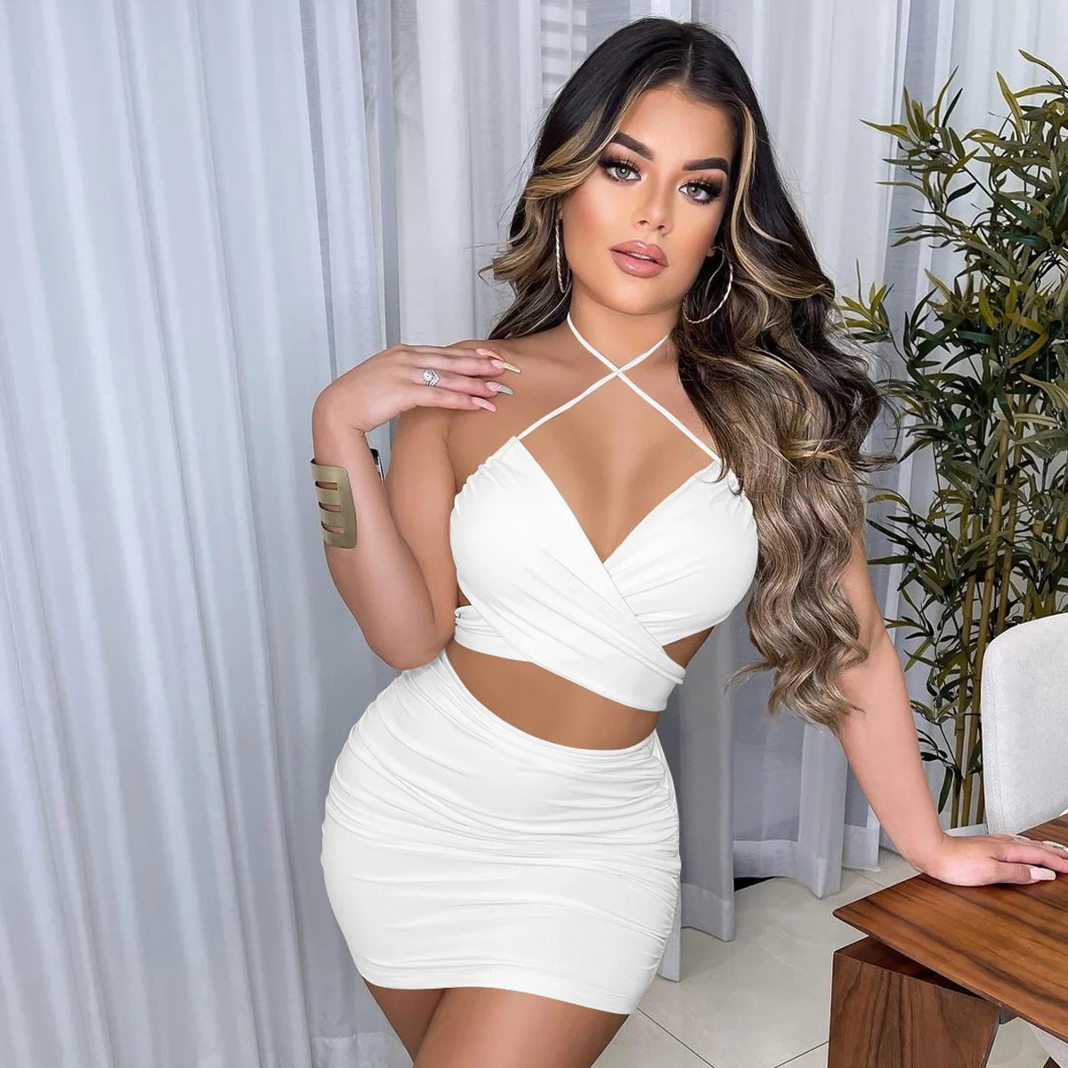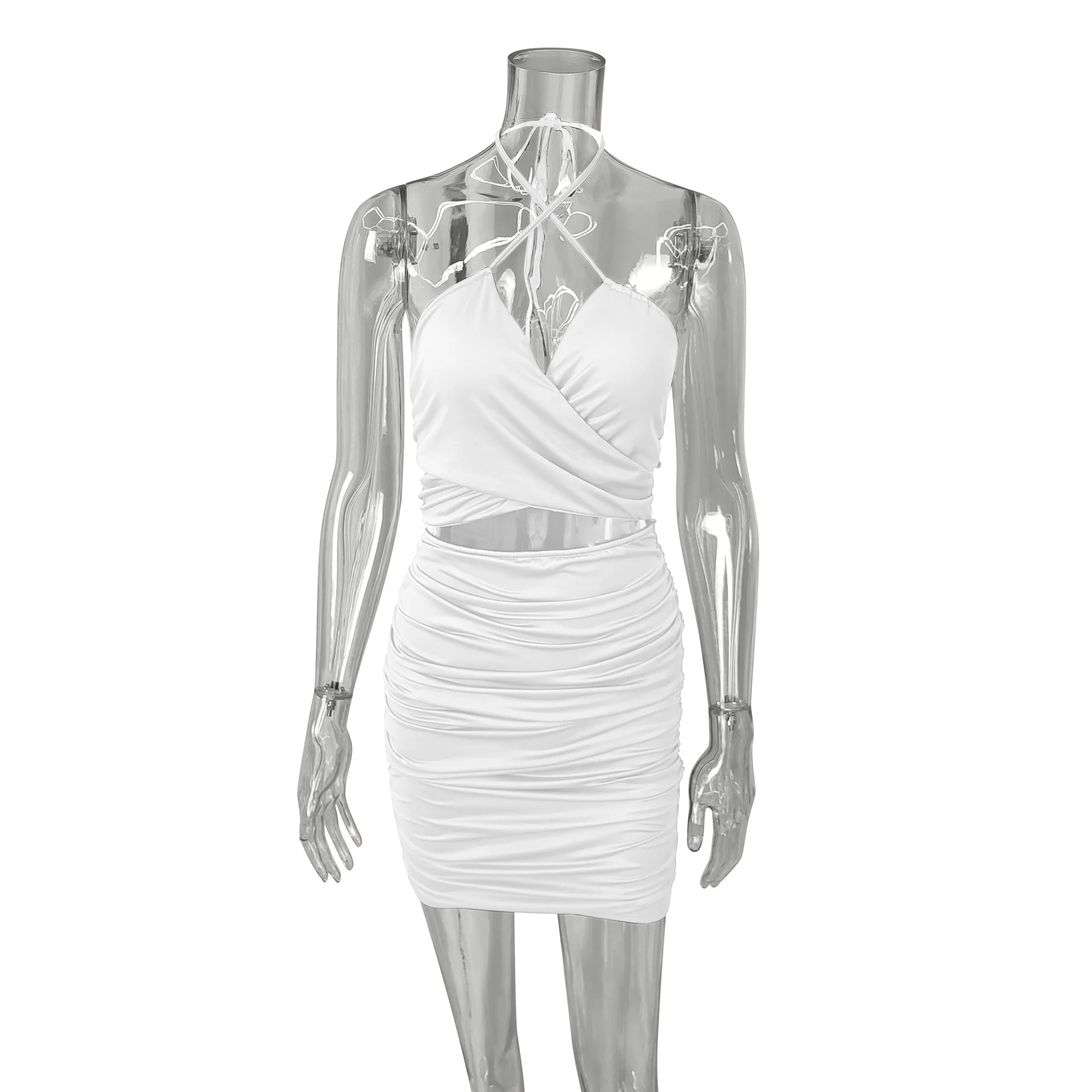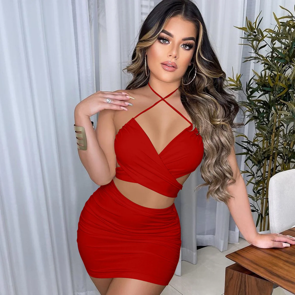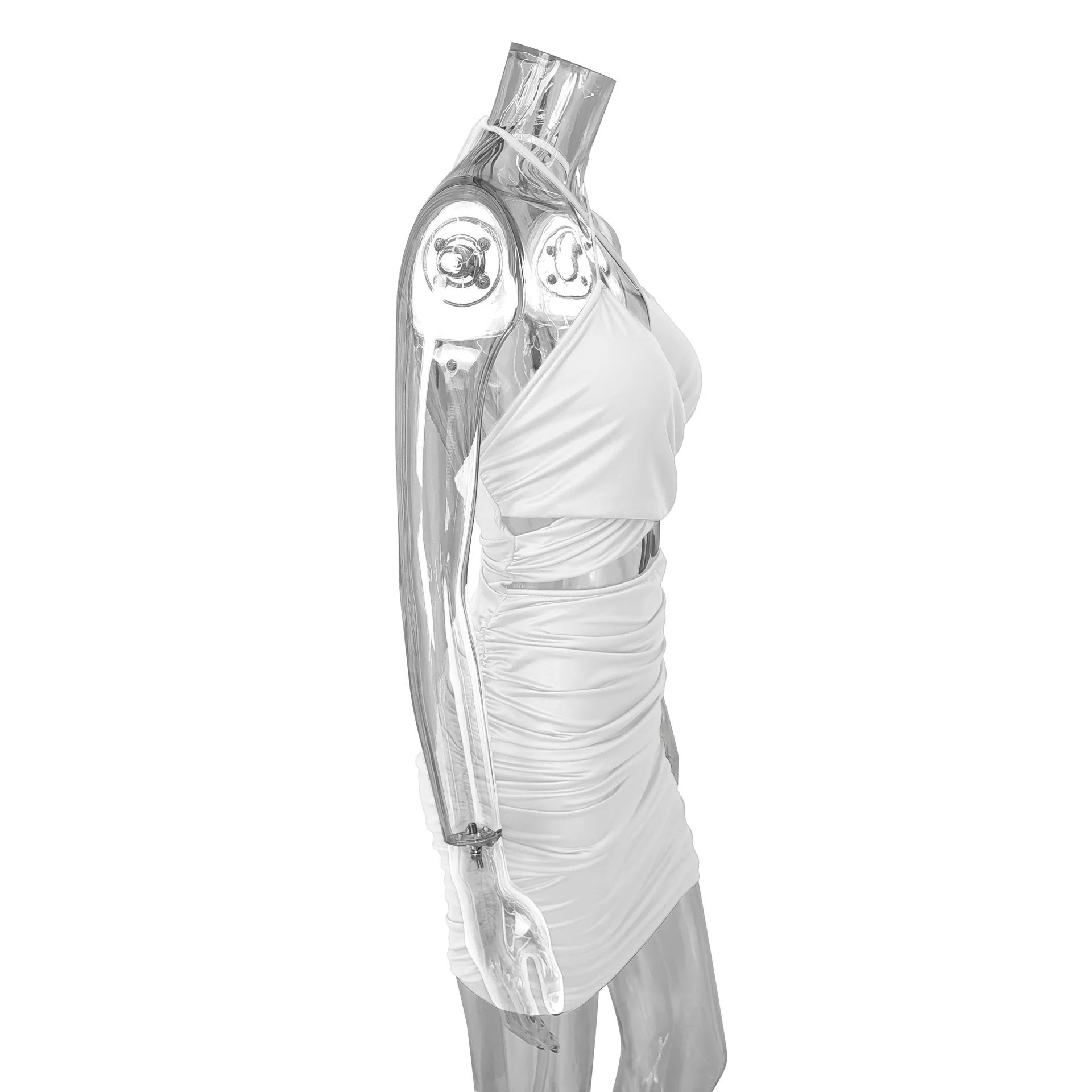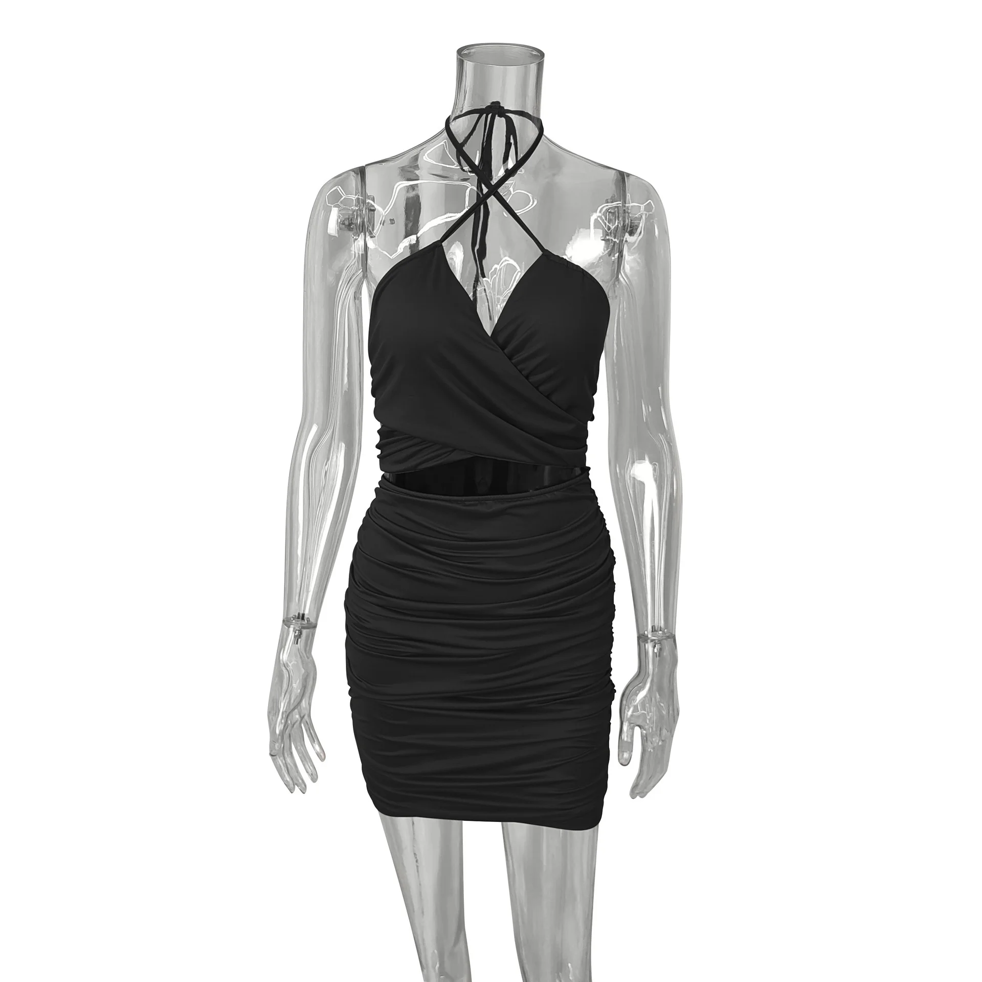 Fleepmart Lace Up V Neck Summer Dresses Ruched Bandage Hot Sexy Club Night Birthday Outfit Women Skinny Mini Party Dress