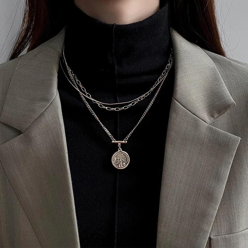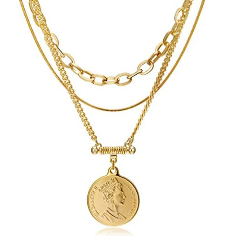 Fleepmart Layered Choker Necklace Gold Plated Coin Pendant Necklace Multilayer Disc Necklace Chunky Paperclip Link Chain Layering Necklace