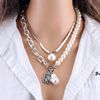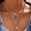 Fleepmart Layered Punk Chain Necklace Key Lock Pendant Metal Imitation Pearl Necklaces Cuban Link Chain Goth Accessory For Women