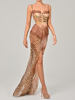 Fleepmart Leopard Print Lace Split Sexy Maxi Dress Women Gown Elegant Patchwork Chiffon Sleeveless Backless Beach Evening Dress