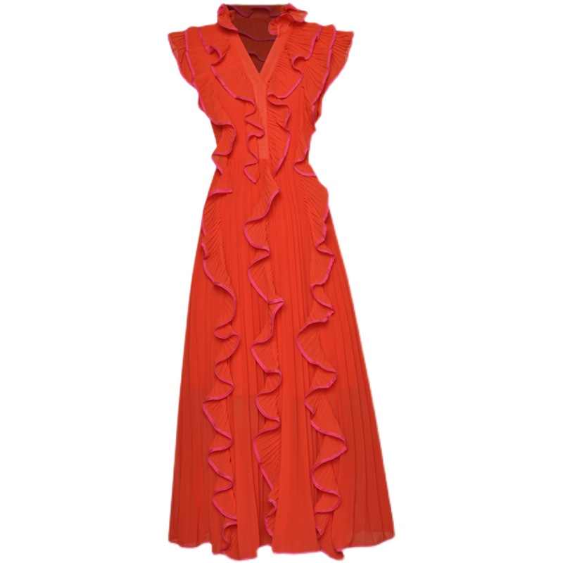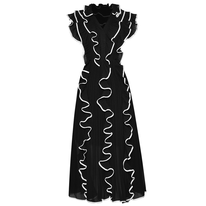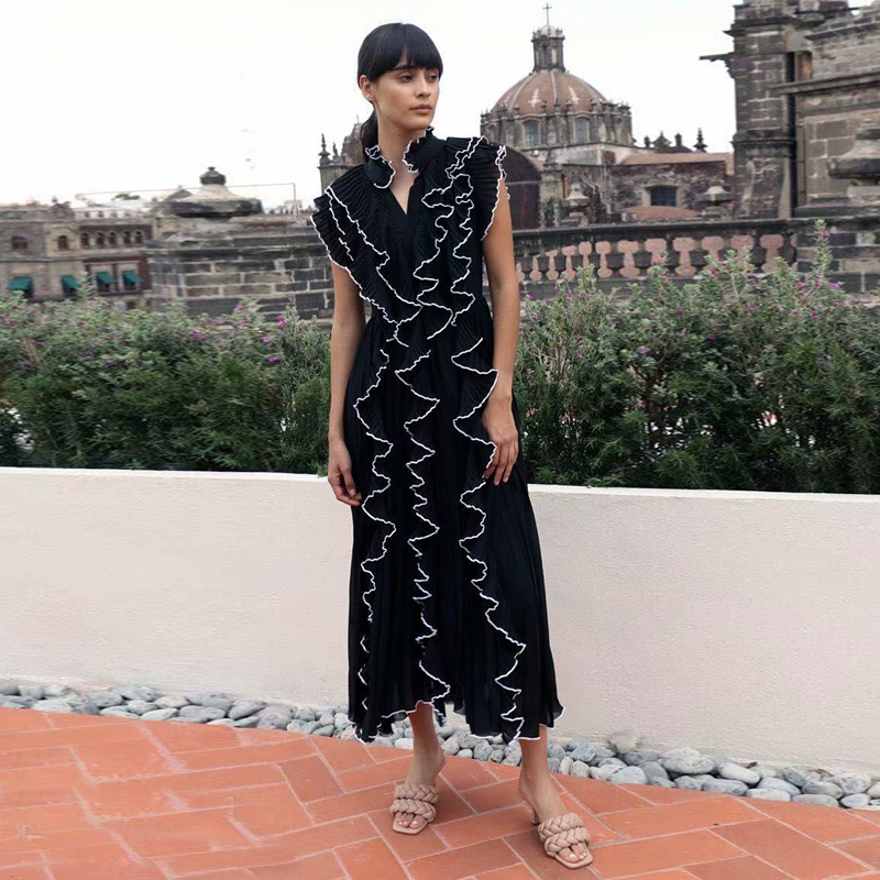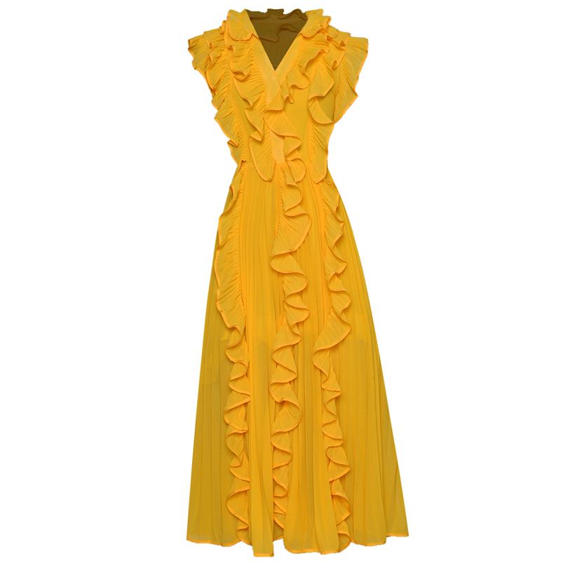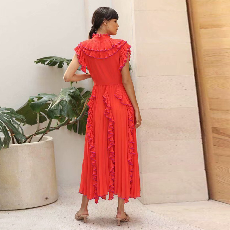Fleepmart Long Dress Designer Spring Summer New High Quality Pleated Ruffles Elegant Chic Party Casual Fashion Women’S Dresses