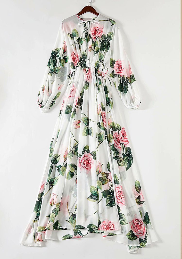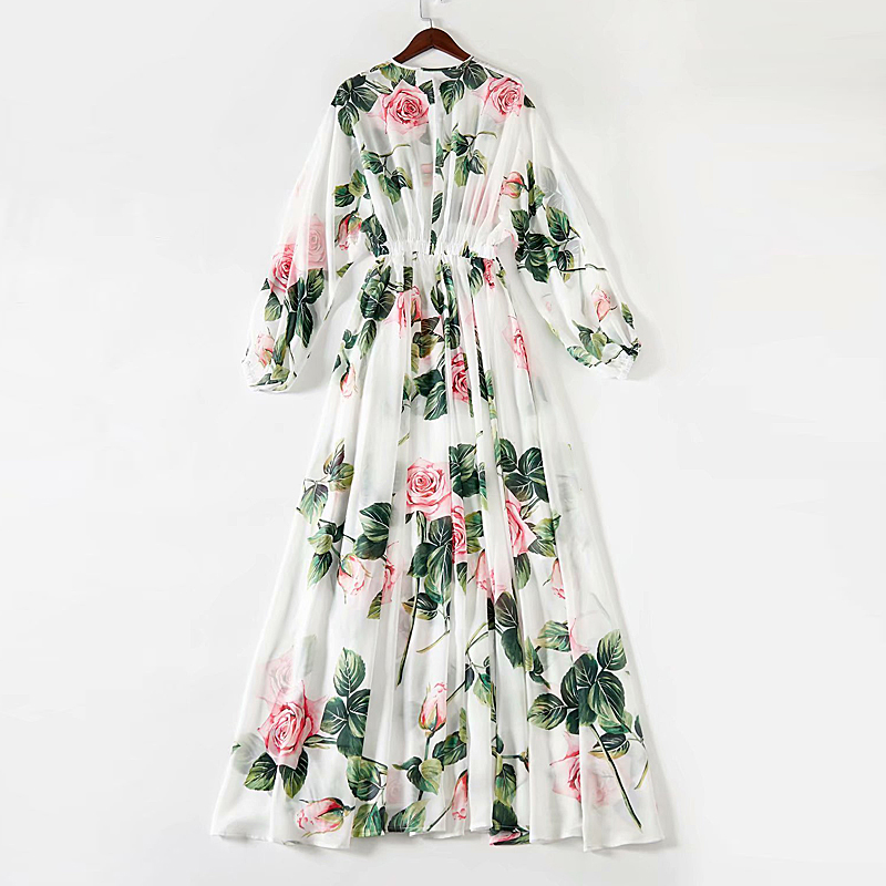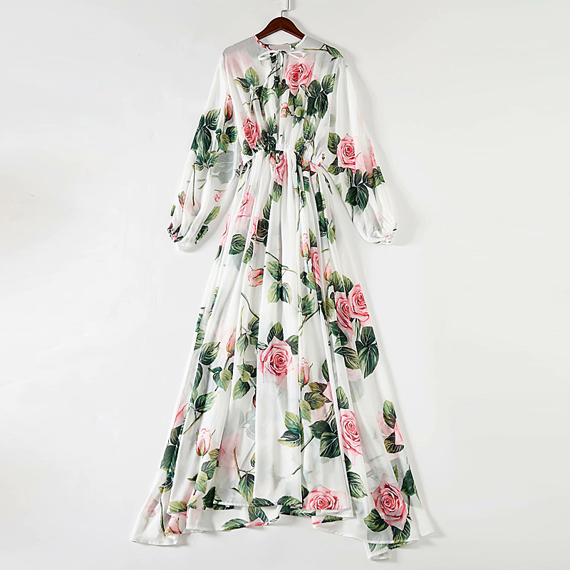 Fleepmart Long Dress Runway High Quality Spring Autumn New Women Bohemian Beach Fashion Party Vintage Elegant Chic Print Chiffon Dresses