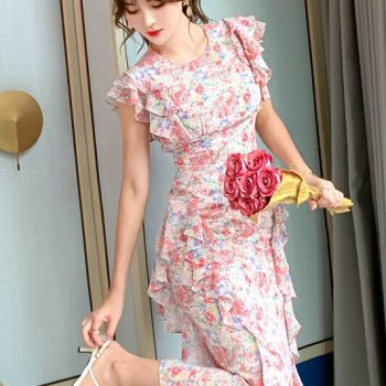 Fleepmart Long Dress Shiny Sequined Velvet Women Luxury O Neck Lantern Sleeve See Through Ruffle Elegant Evening Event Outfit Summer