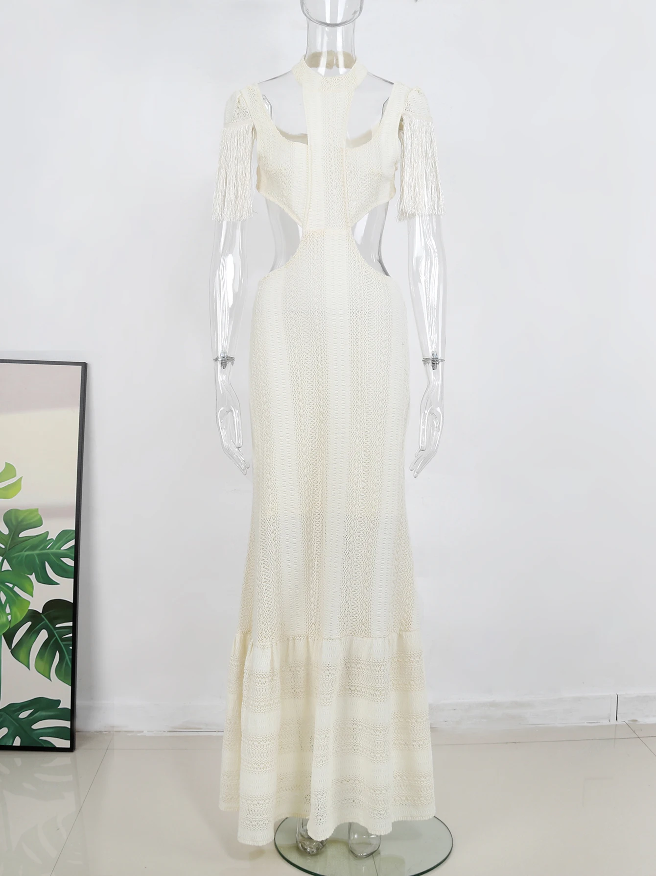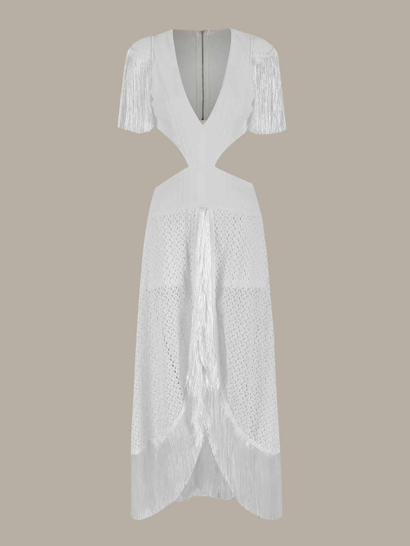 Fleepmart Long Dress Tassels Women Deep V Neck Sexy Elegant Party Holiday Chic Gown