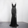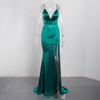 Fleepmart Long Satin Backless Prom Party Evening Maxi Dress Ruched Low V Cut Split Front Stretchy Bodycon Sexy Slim
