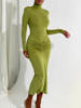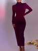 Fleepmart Long Sleeve Ruched Bodycon Dress Women Turtleneck Bandage Long Dresses Autumn Black Skinny Stretchy Party Vestidos