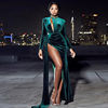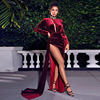 Fleepmart Long Sleeve Sexy Velvet Maxi Dress Women’s Evening Party Dress Gown with Split Fork Green Black Burgundy Draped Long Dress