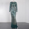 Fleepmart Long Sleeve Stretch Sequin Party Dress O Neck Full Lining Floor Length Evening Night Gown Emerald