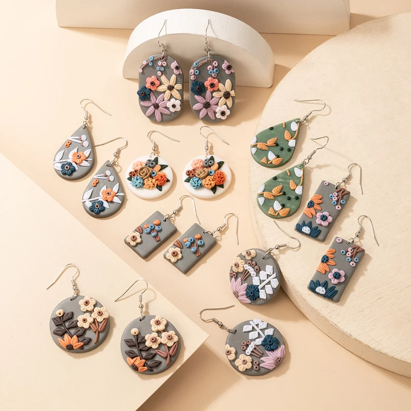 -Fleepmart Lovely Creative Resin Dangle Earrings for Women Elegant Colorful Flowers Soft Pottery Earrings Party Jewelry Wholesale+ Fleepmart Lovely Creative Resin Dangle Earrings for Women Elegant Colorful Flowers Soft Pottery Earrings Party Jewelry Wholesale