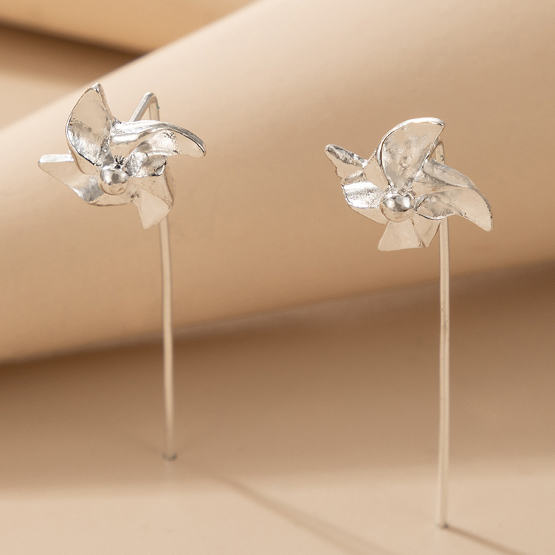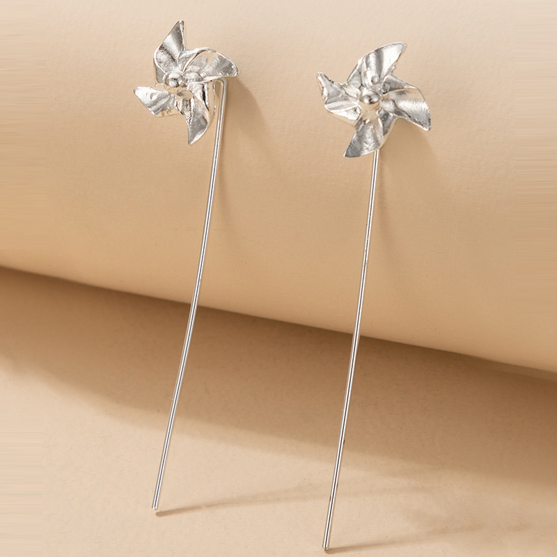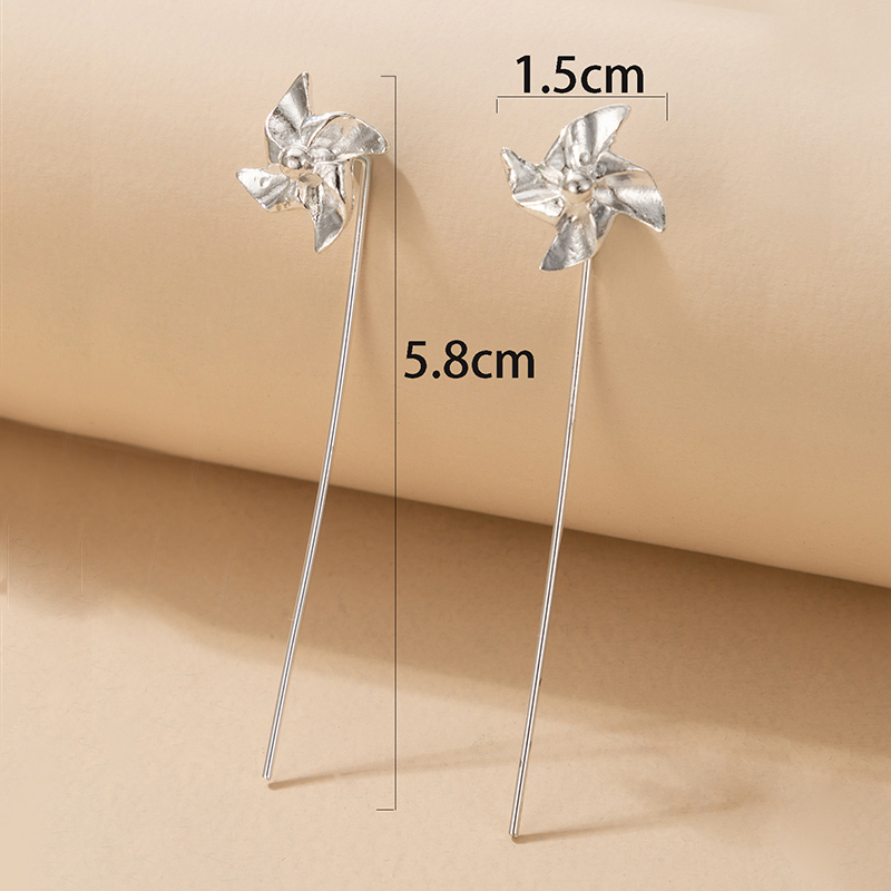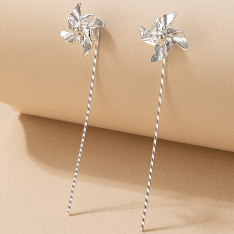 Fleepmart Lovely Windmill Drop Earrings for Women INS Trendy Long Chain Silver Color Flowers Alloy Metal Jewelry Pendientes
