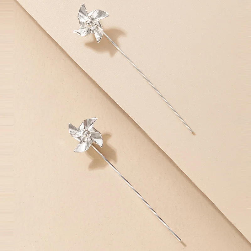Fleepmart Lovely Windmill Drop Earrings for Women INS Trendy Long Chain Silver Color Flowers Alloy Metal Jewelry Pendientes