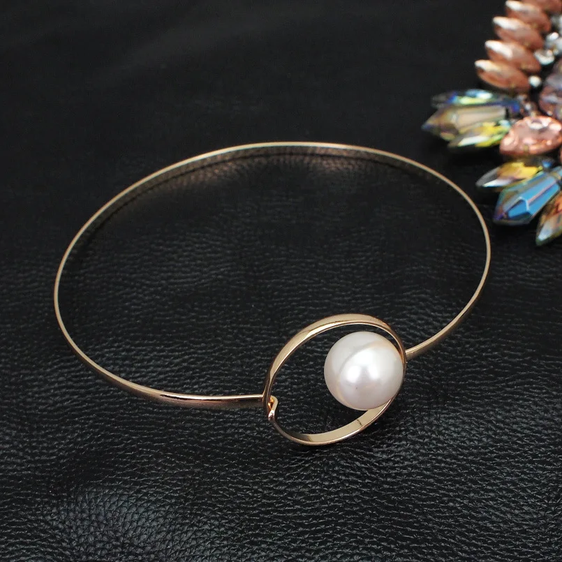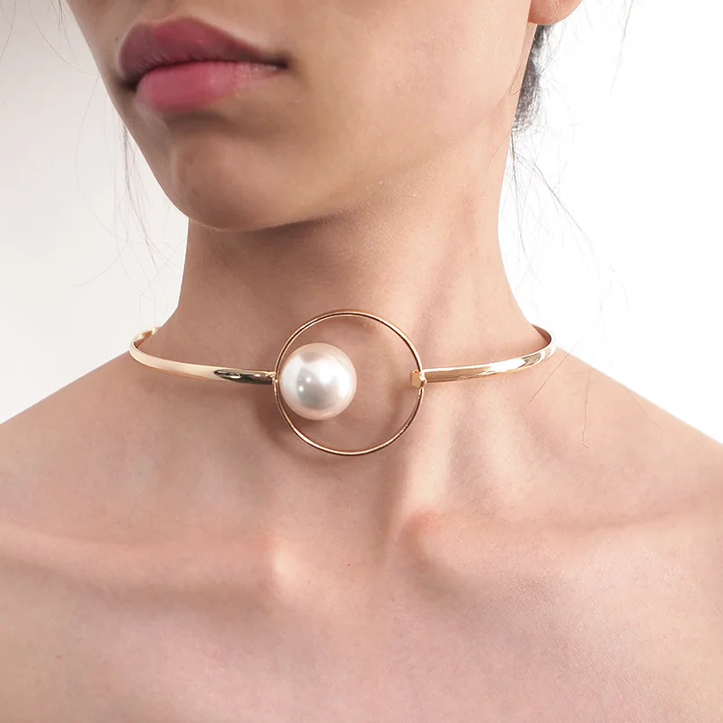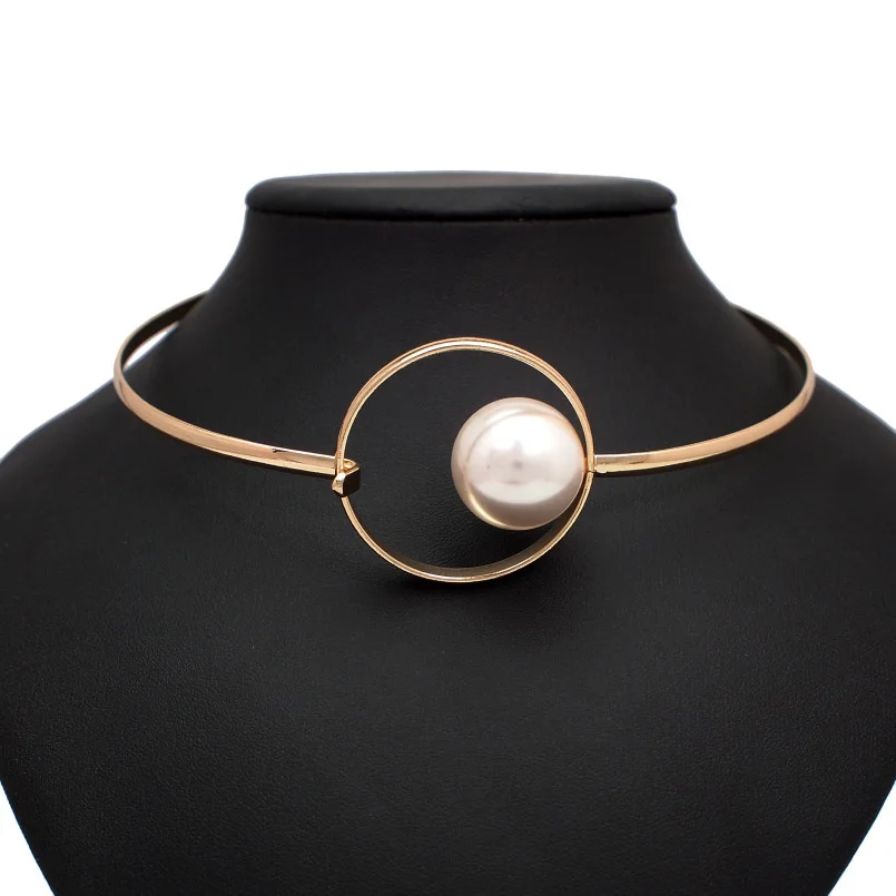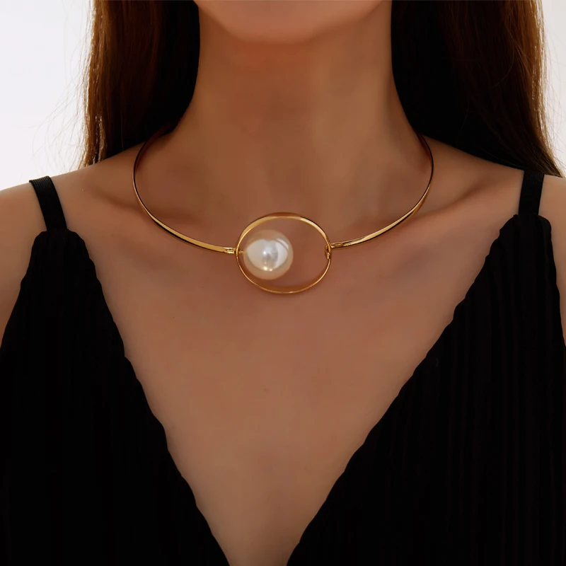 Fleepmart Luxury Alloy Torques Pearl Necklaces For Women Round Choker Golden Color Necklace Elegant Classic Jewelry Party Gift New 2022