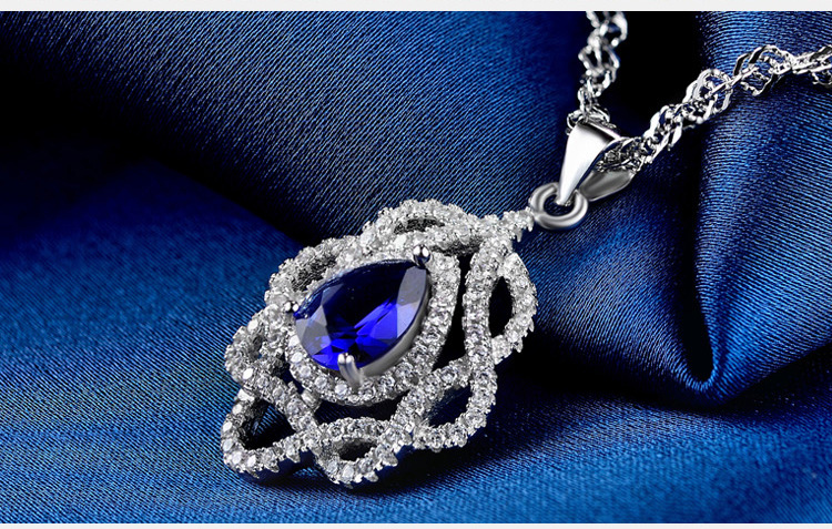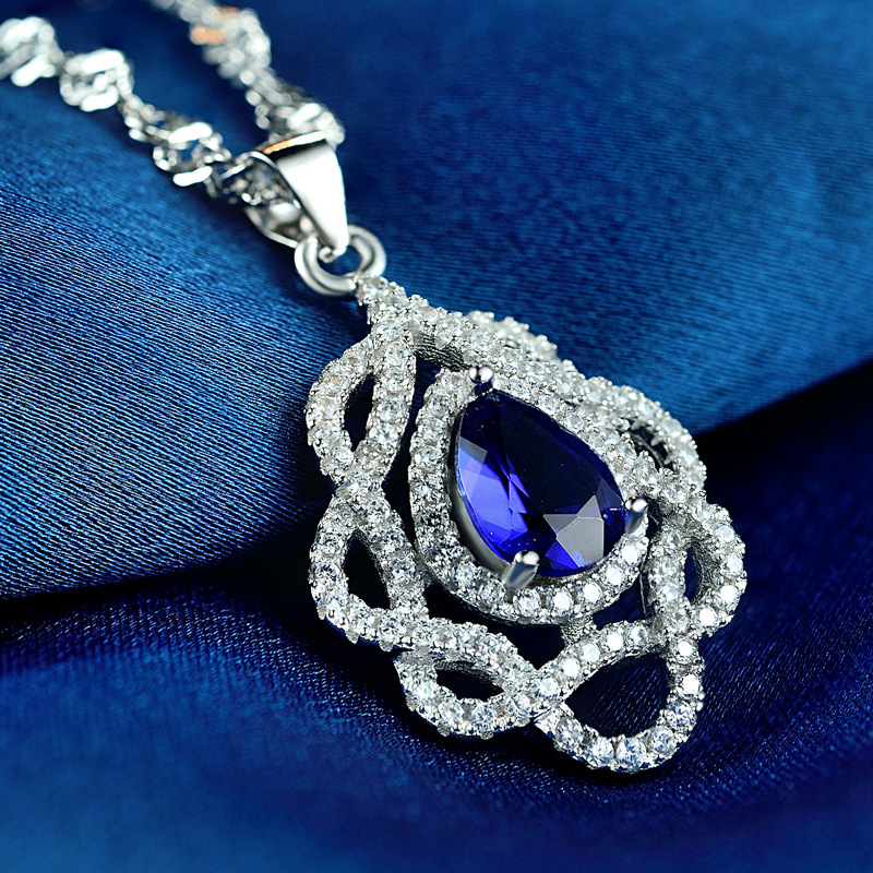 Fleepmart Luxury Brand Jewelry Women Blue Silver Pendant Pure 925 Sterling Silver Necklace Fashion Jewelry Silver Pendant