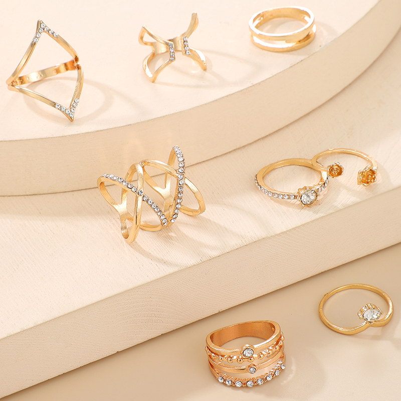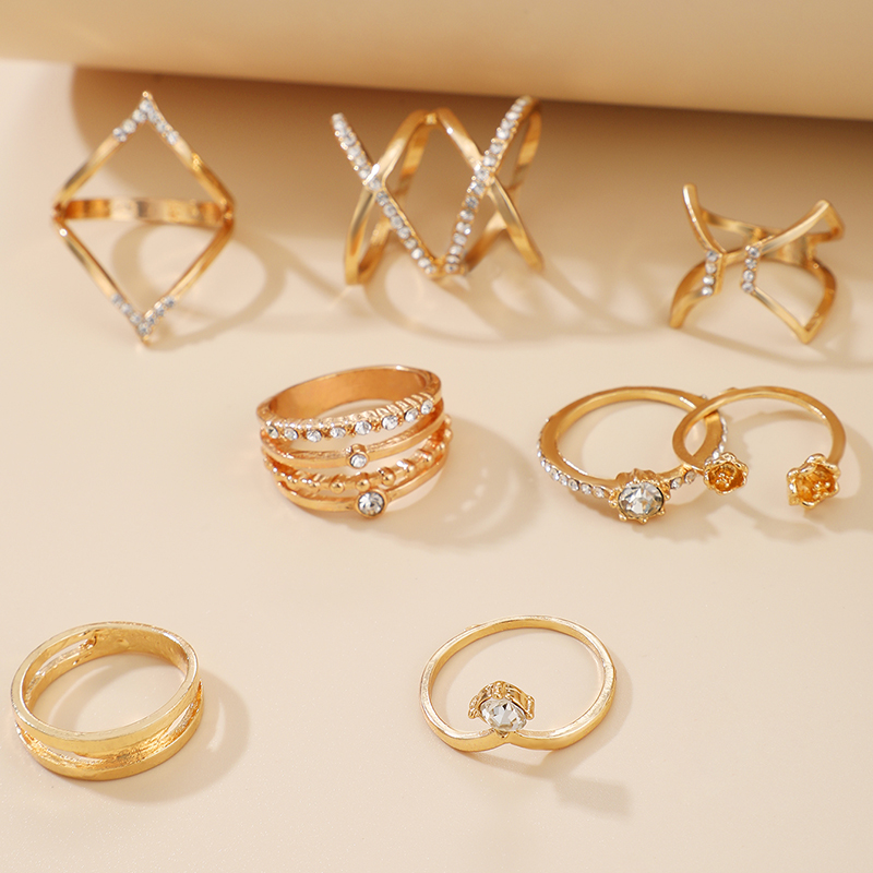 Fleepmart Luxury Crystal Stone Geoemtry Gold Joint Ring Sets for Women Charms Alloy Metal Open Ring Jewelry Anillo 8pcs/sets
