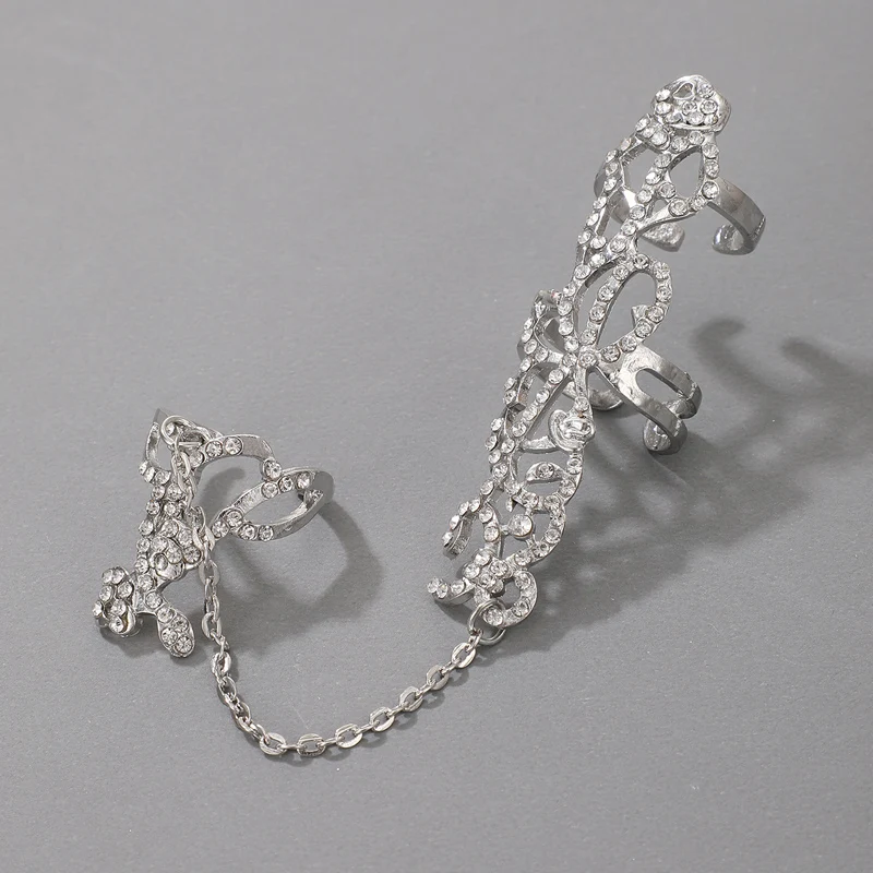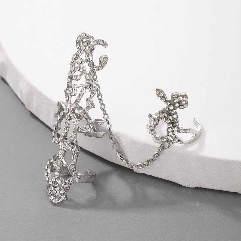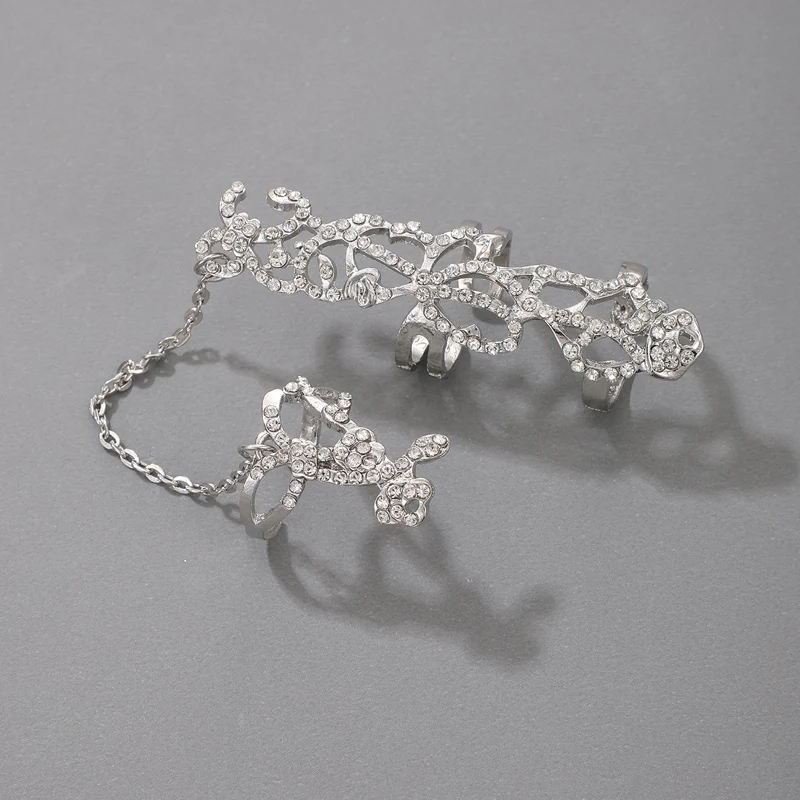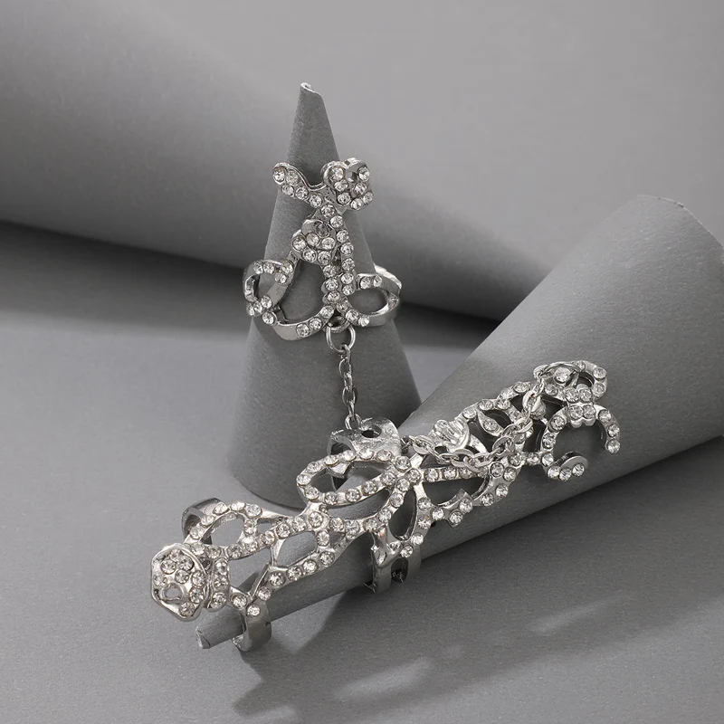 Fleepmart Luxury Crystal Stone Joint Ring for Women Men Hollow Geoemtic Flowers Open Ring Party Jewelry Accessories Anillo