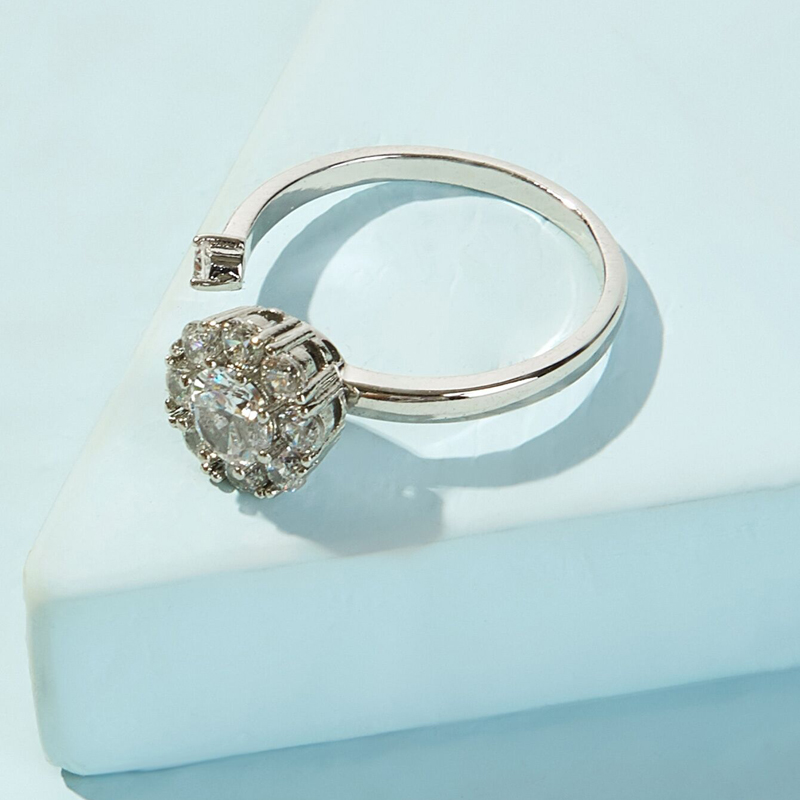 Fleepmart Luxury Crystal Stone Wedding Ring for Women Attractive Rotatable Silver Color Alloy Metal Opening Jewelry Anillo