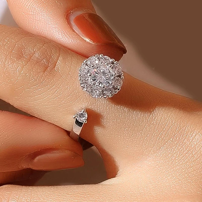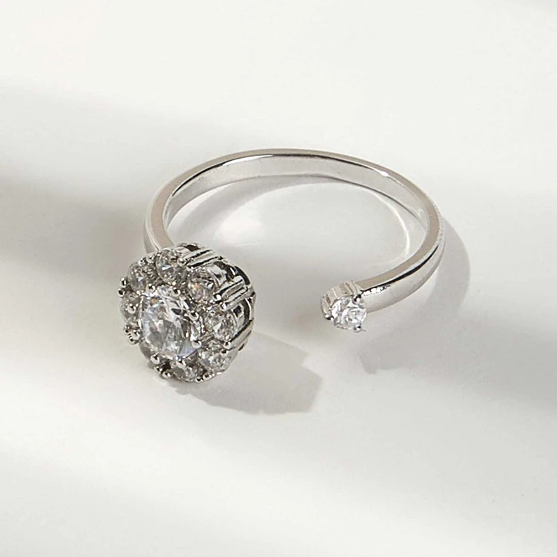 Fleepmart Luxury Crystal Stone Wedding Ring for Women Attractive Rotatable Silver Color Alloy Metal Opening Jewelry Anillo