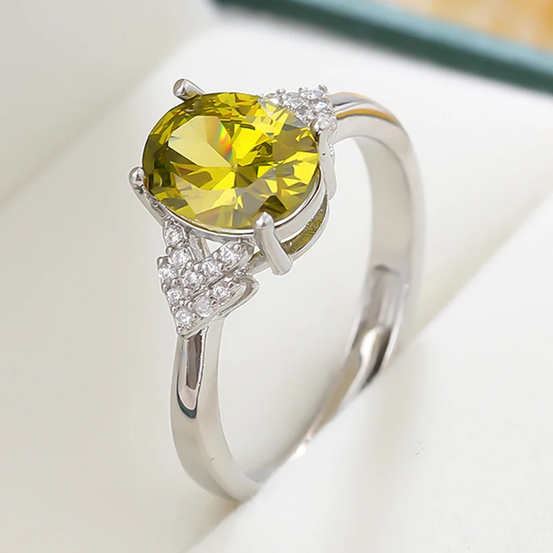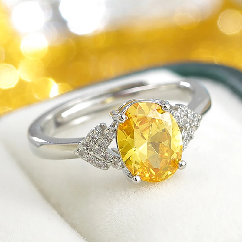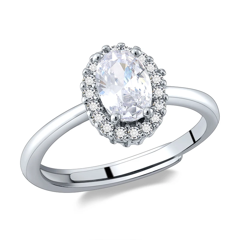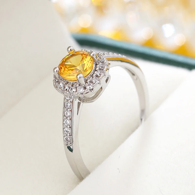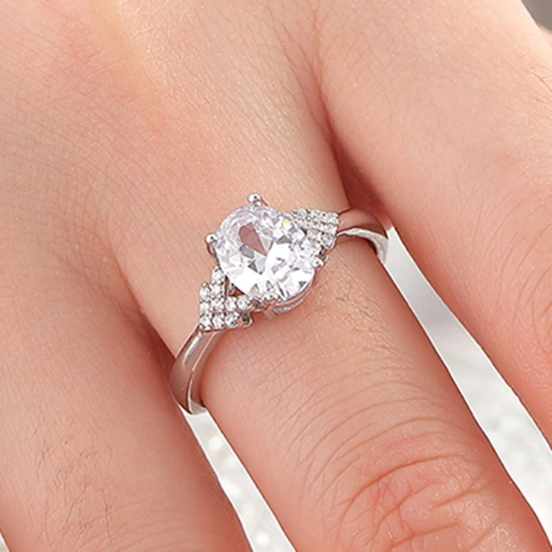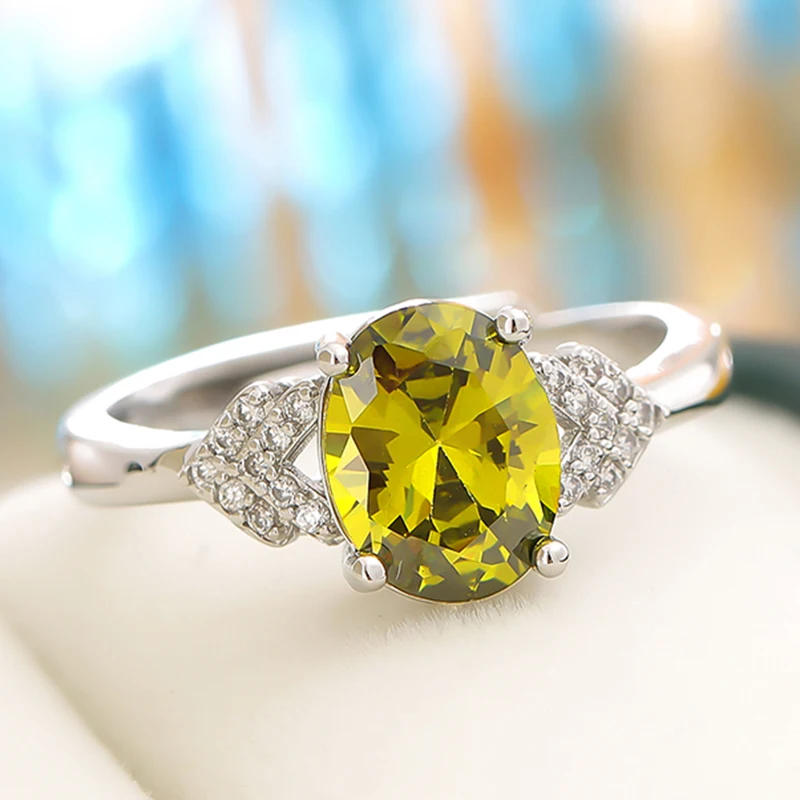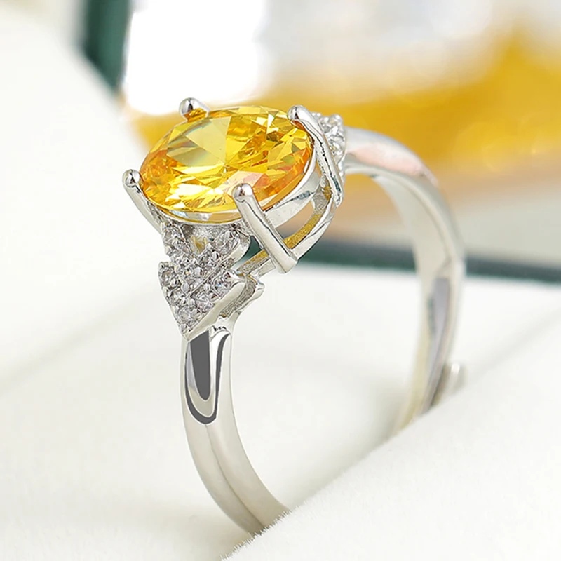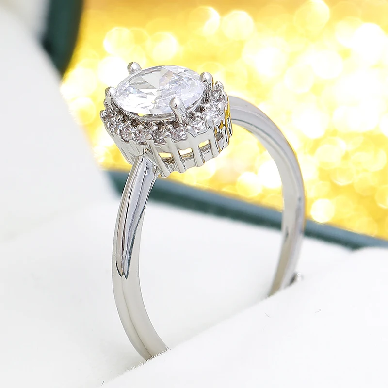 Fleepmart Luxury Gold Color Crystal Cubic Zircon Women Ring Princess Wedding Oval Style Female Finger Ring Silver Plated Engagement Party