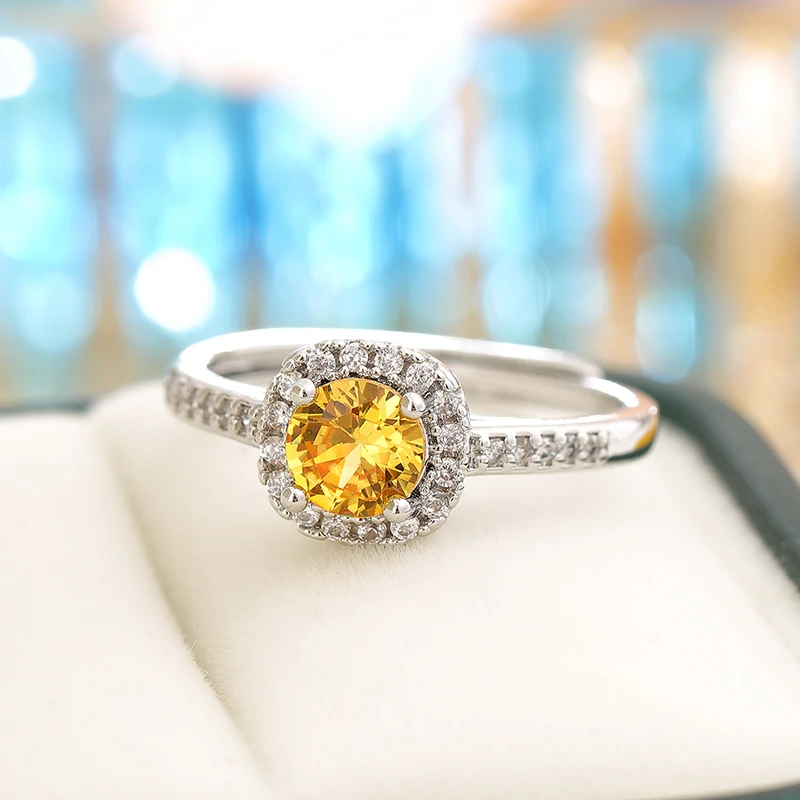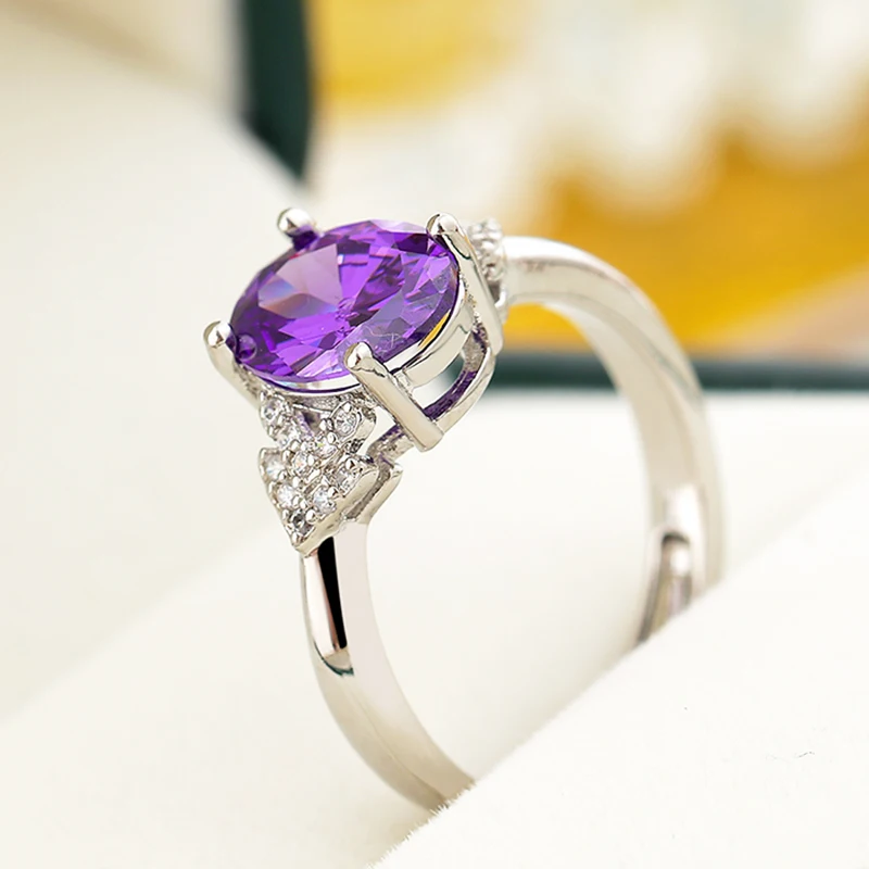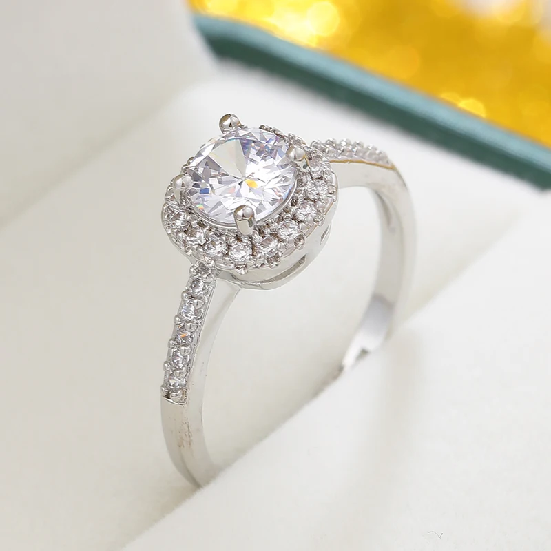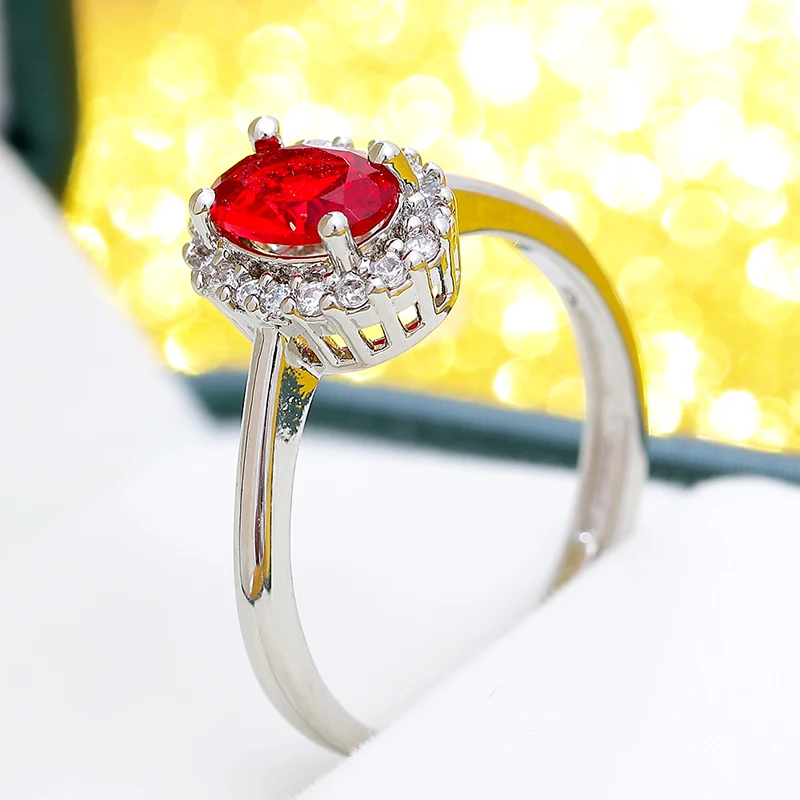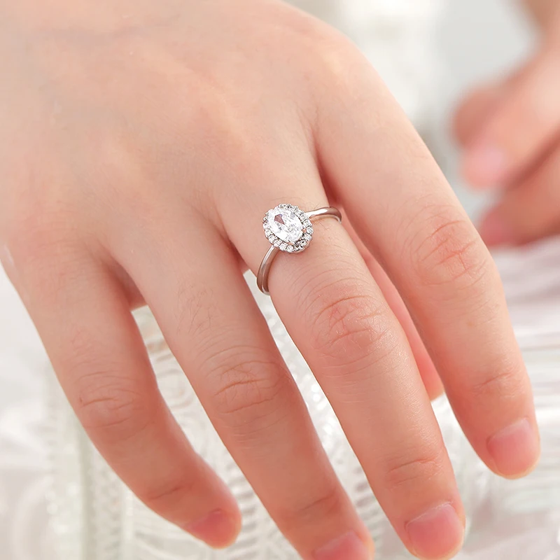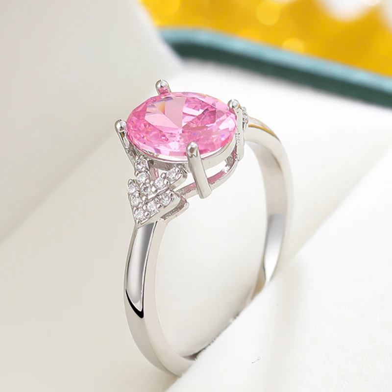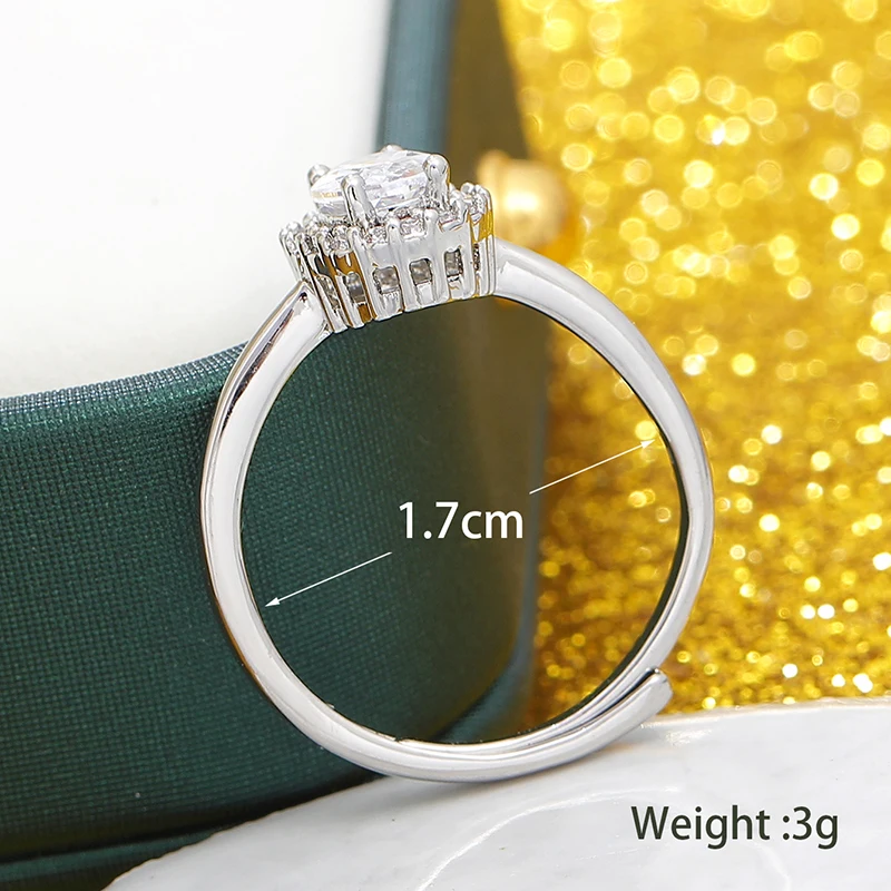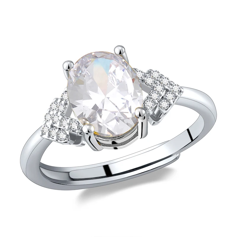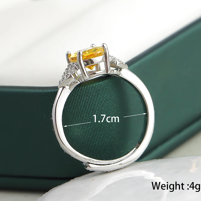 Fleepmart Luxury Gold Color Crystal Cubic Zircon Women Ring Princess Wedding Oval Style Female Finger Ring Silver Plated Engagement Party