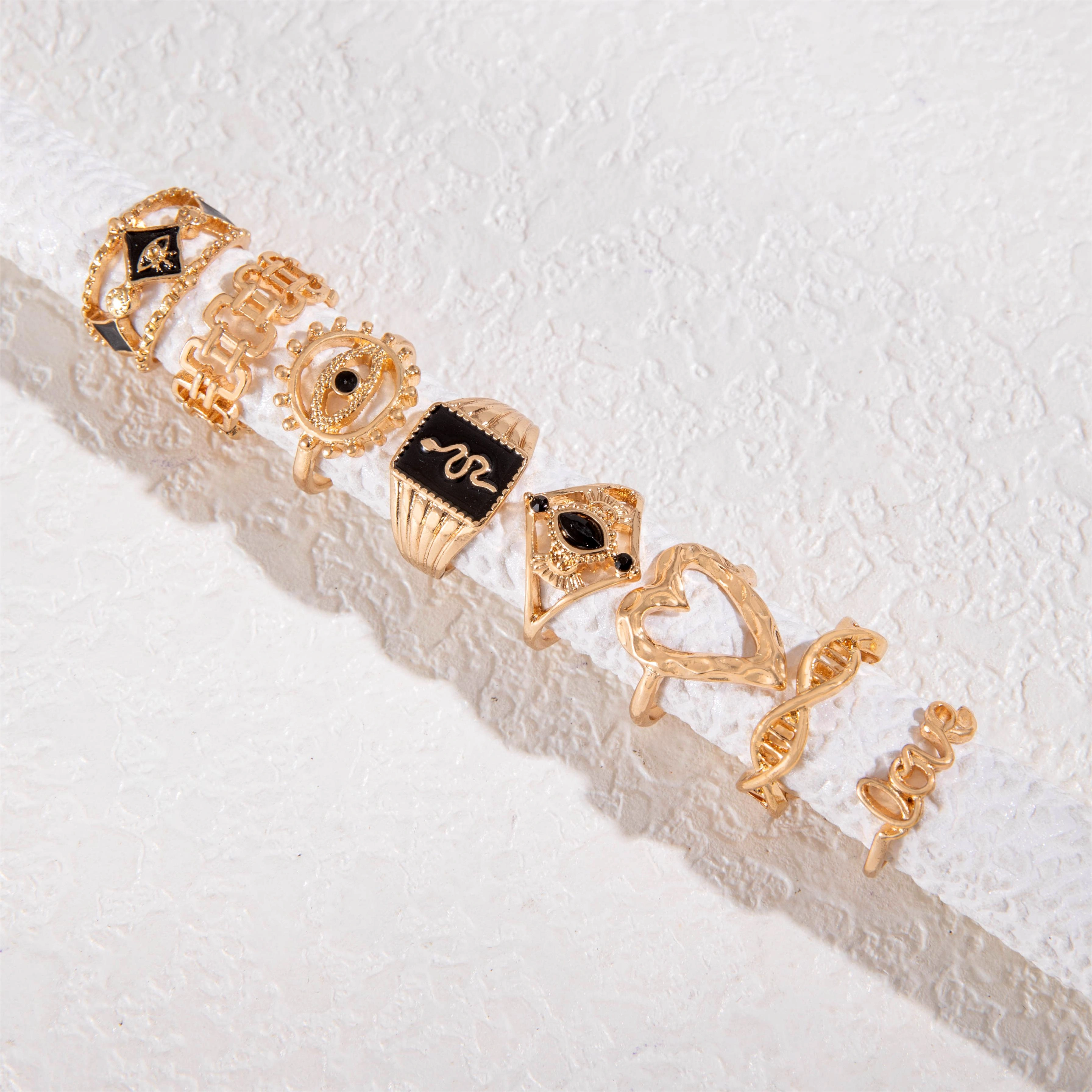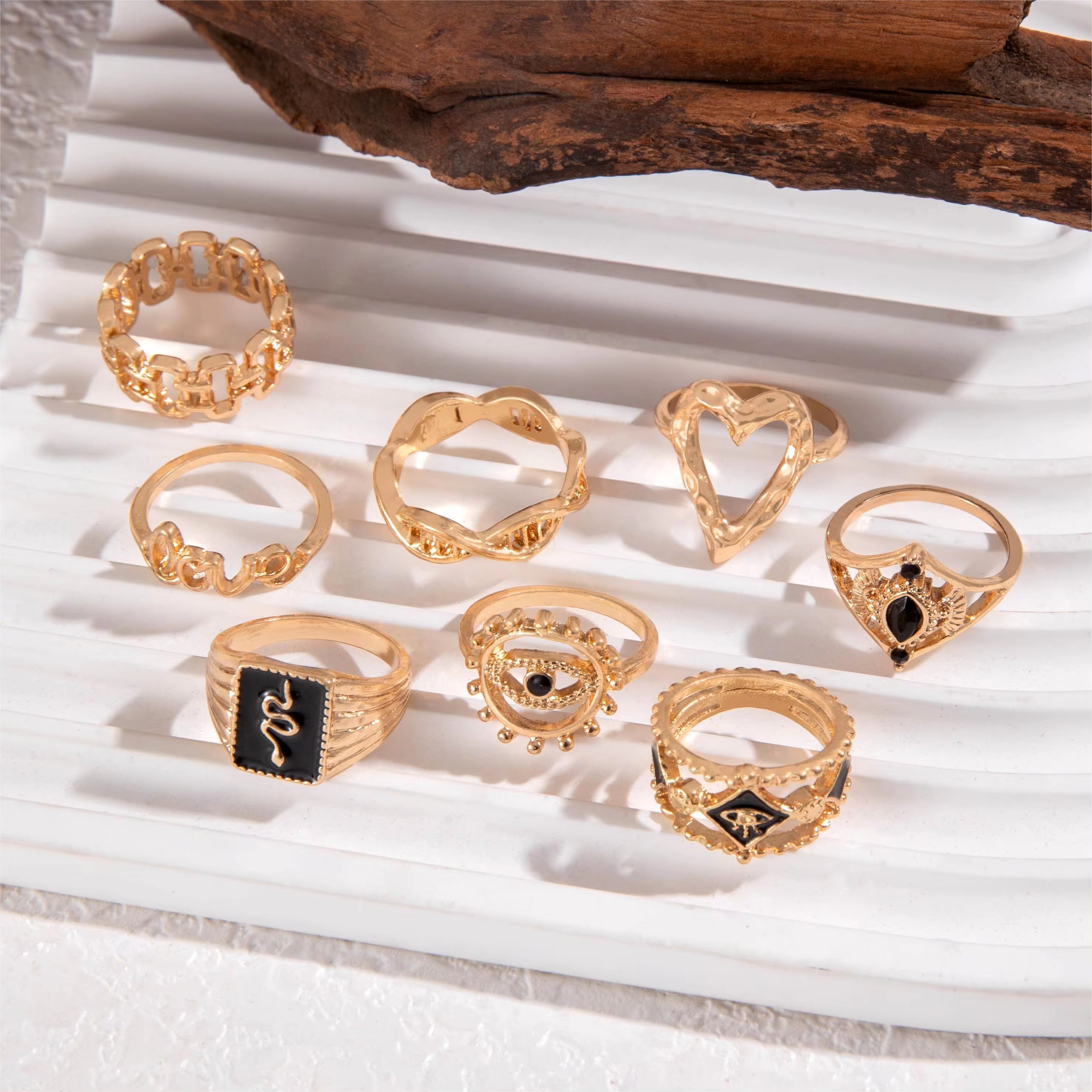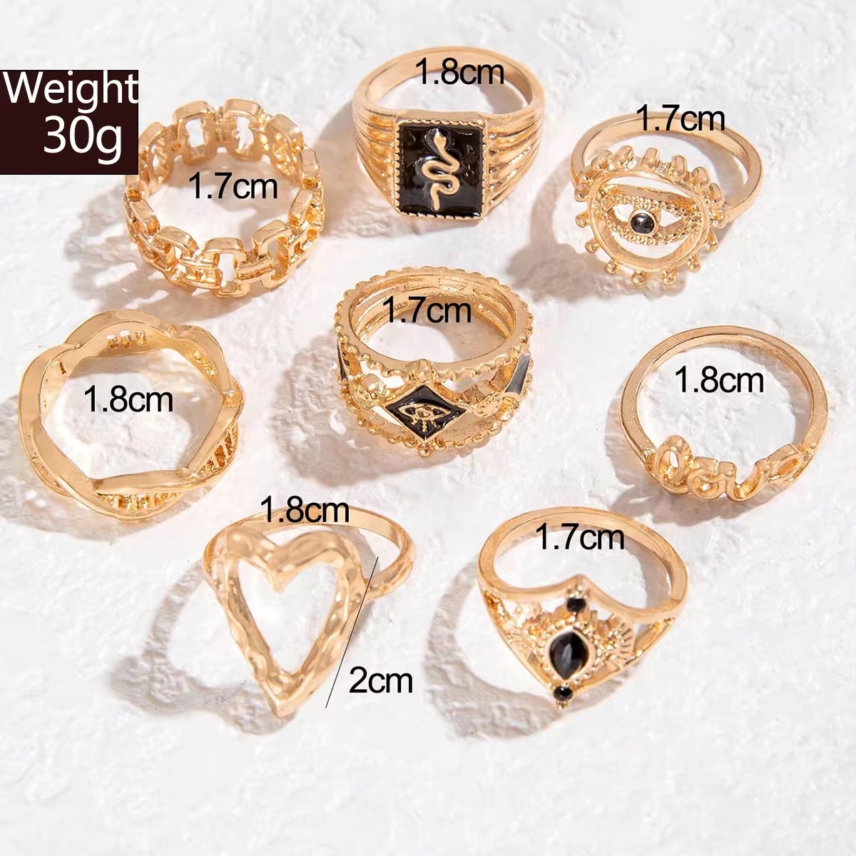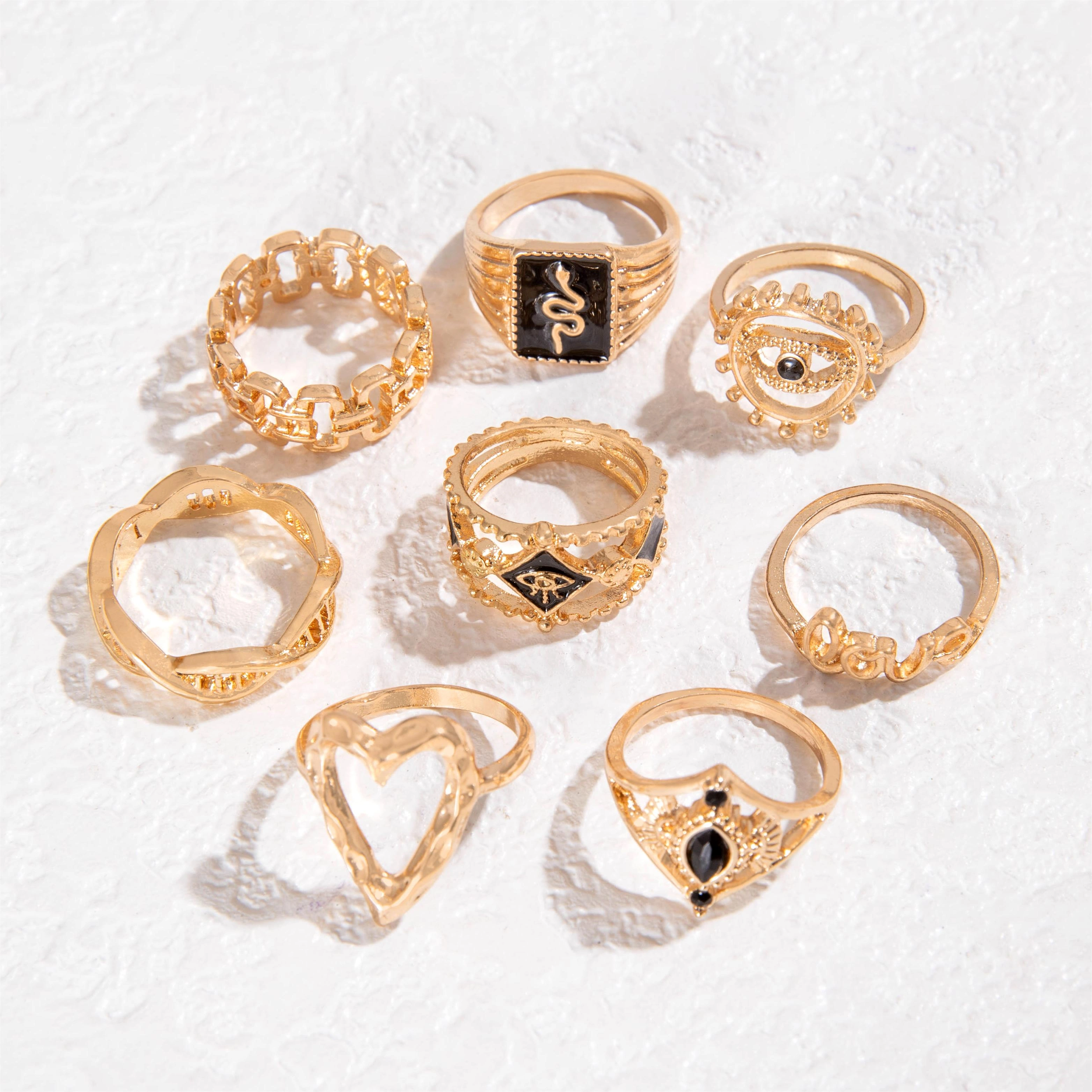 Fleepmart Luxury Gold Color Eye Heart Joint Rings Set for Women Classic Letter Snake Ringns Set Jewelry Party 8pcs/set