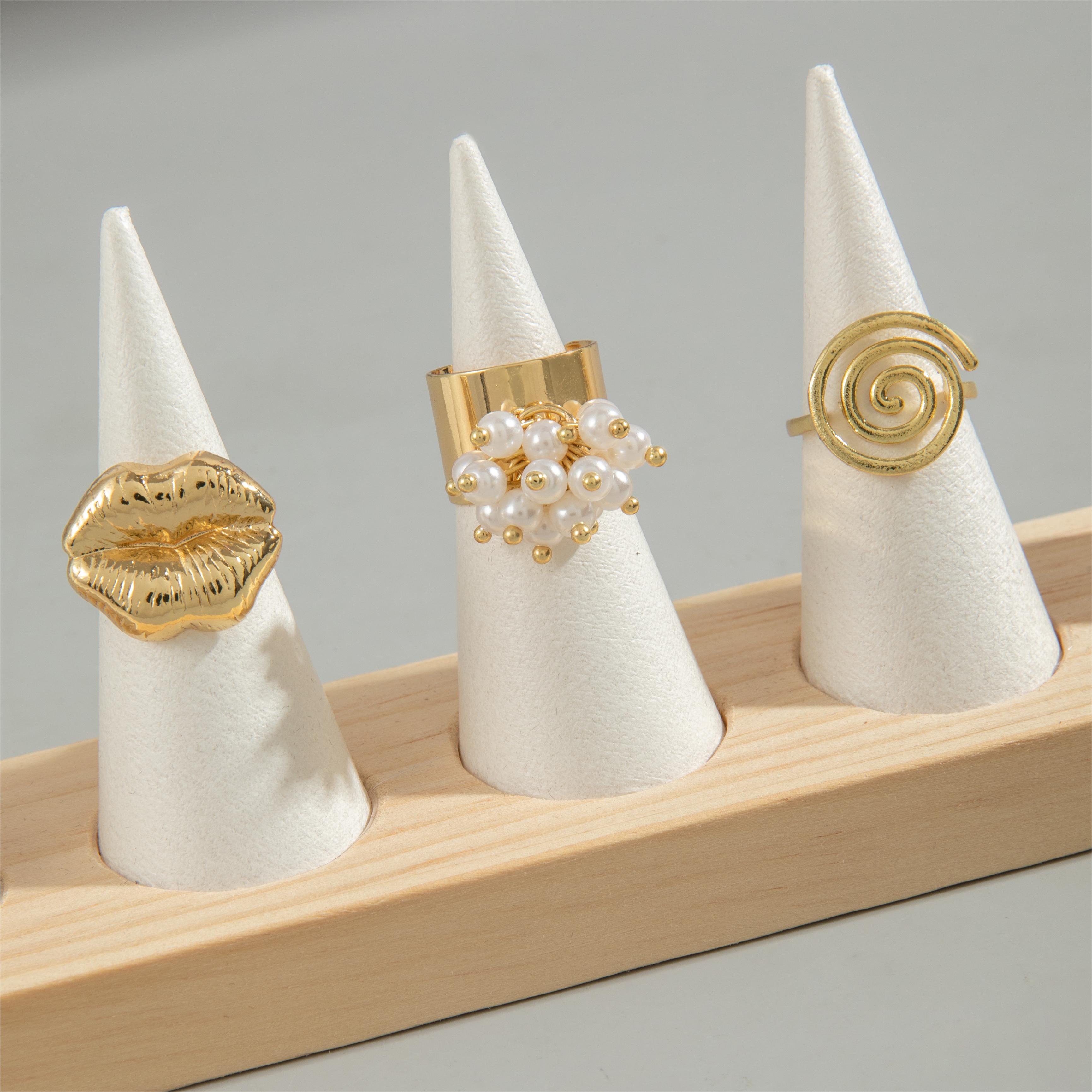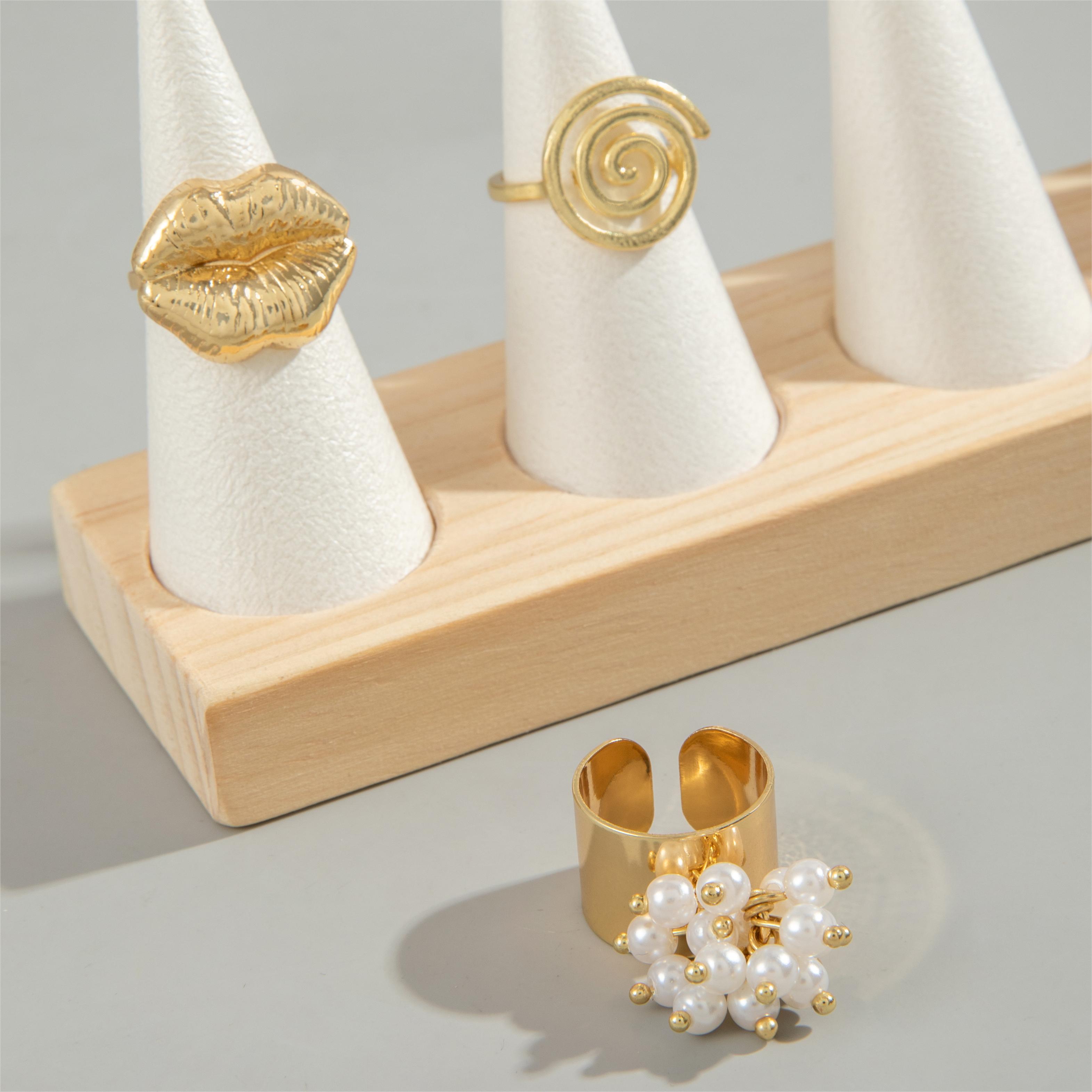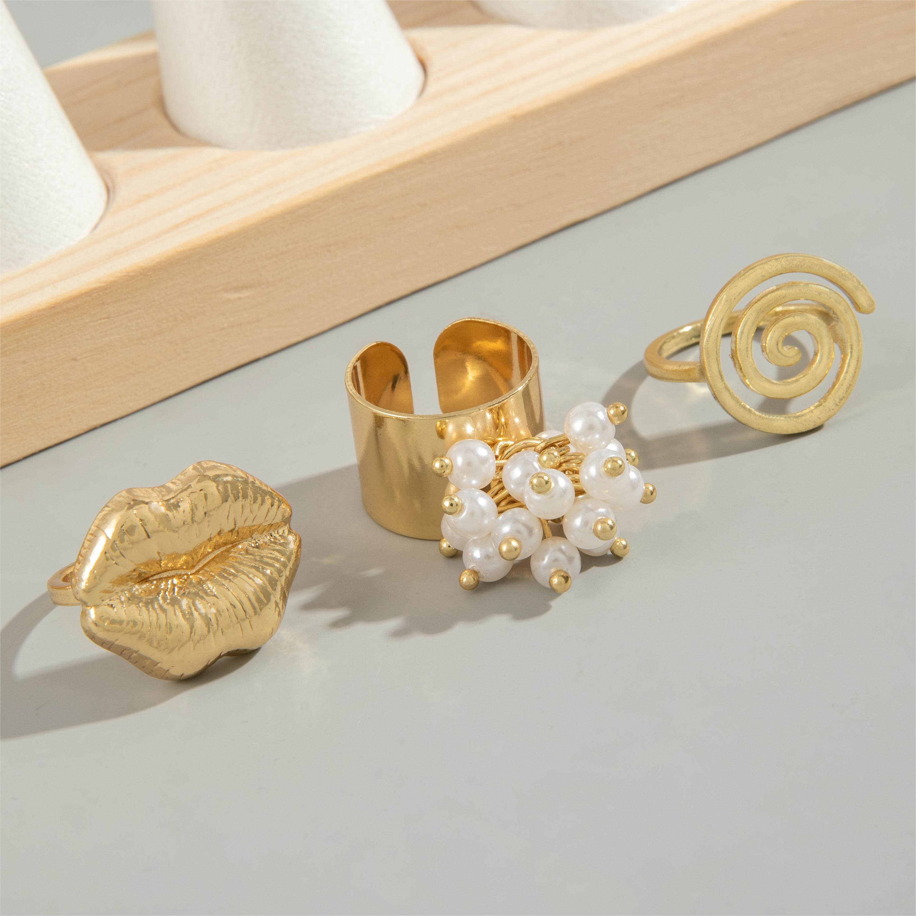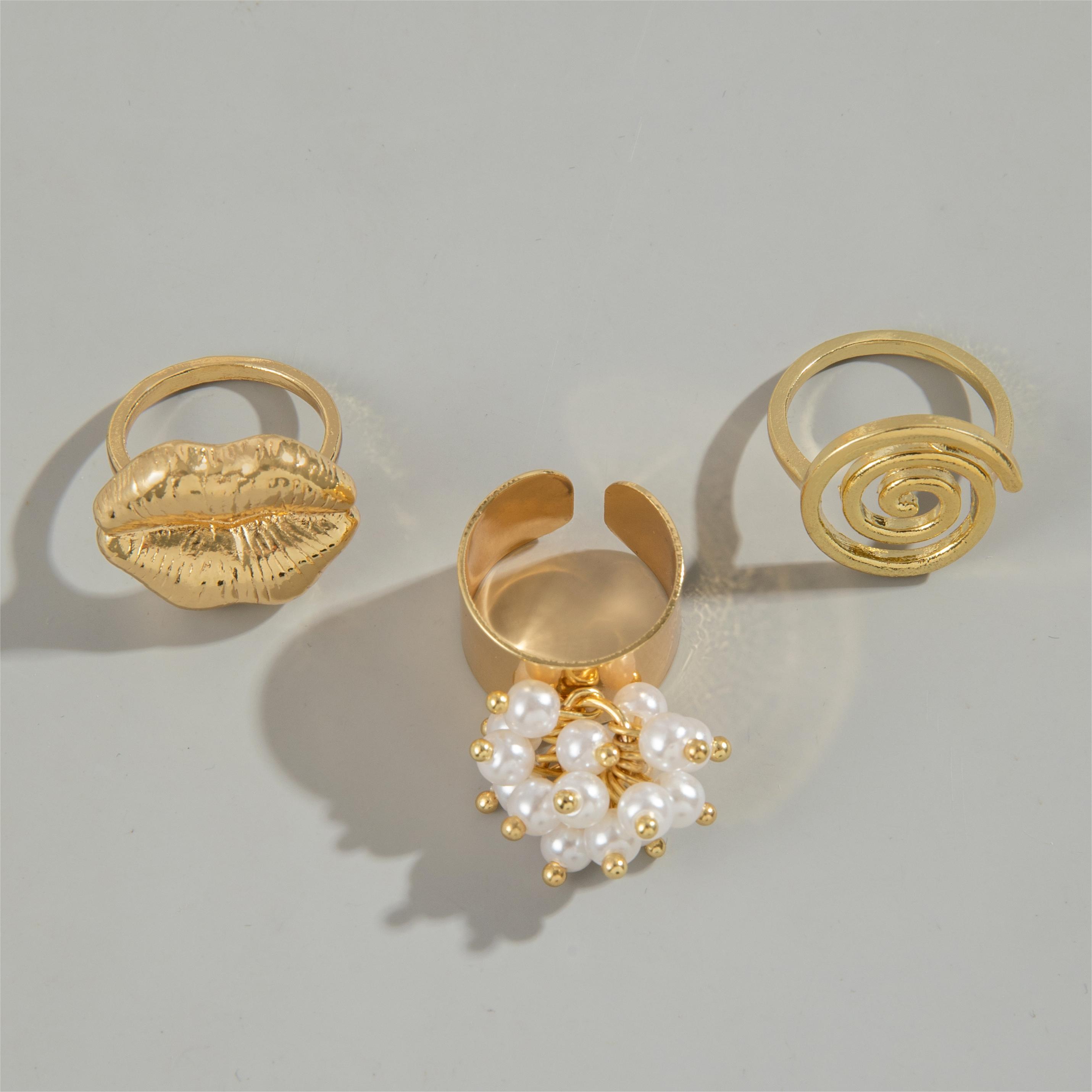 Fleepmart Luxury Gold Color Pearl Stone Mouth Finger Ring Sets for Women Trendy Lrregular Rings Set Jewelry Party 3pcs/Set