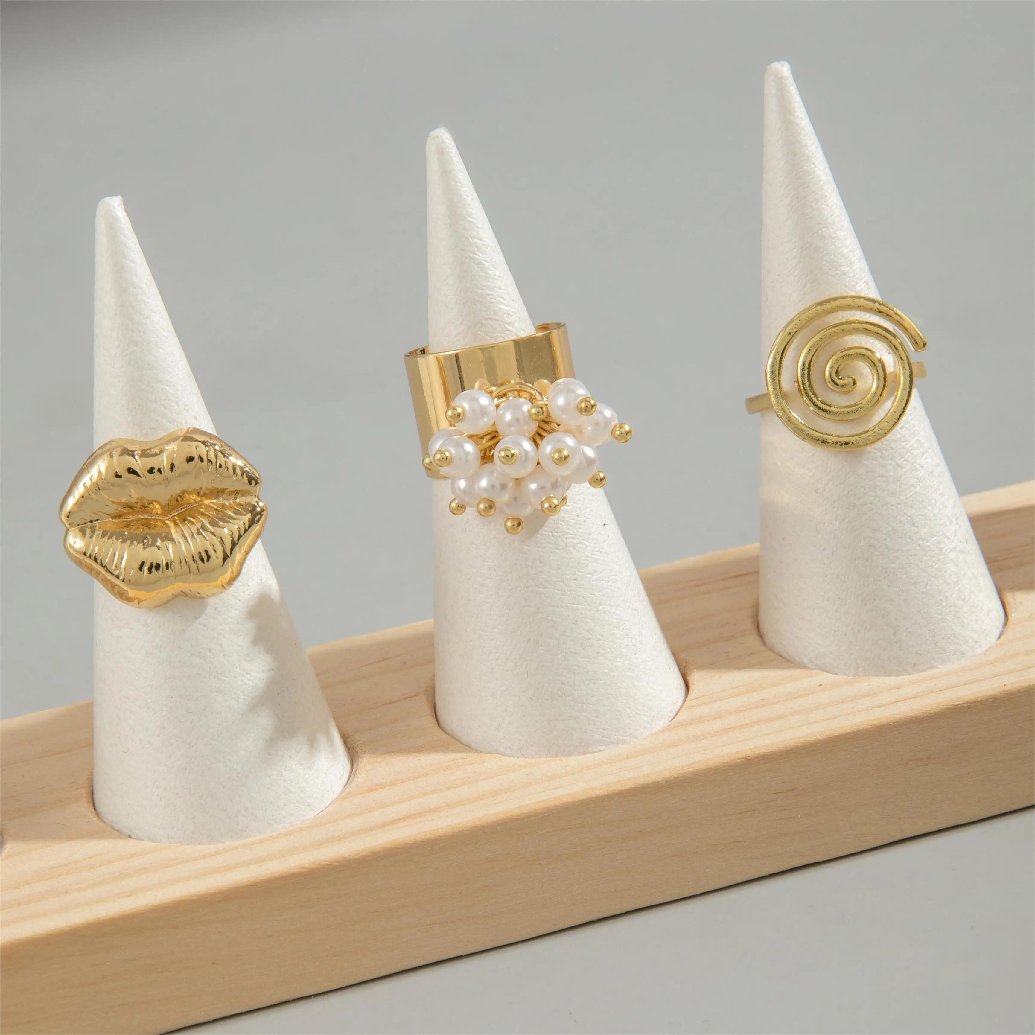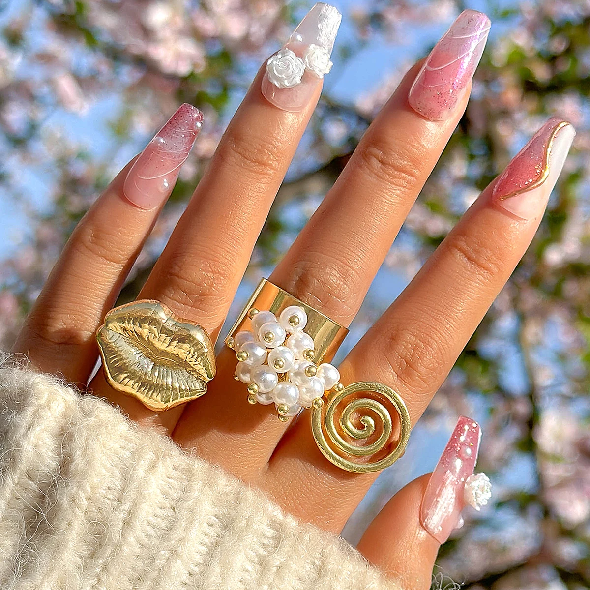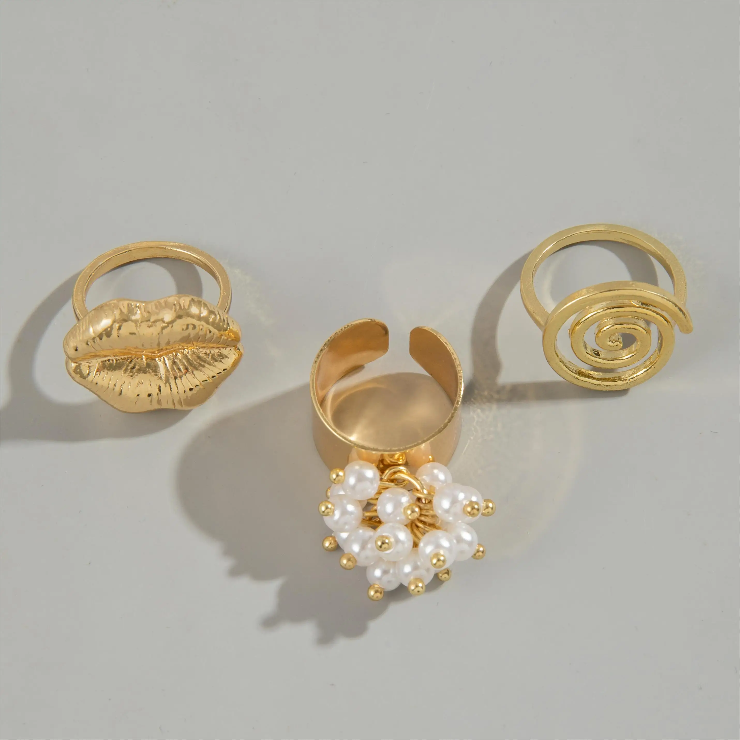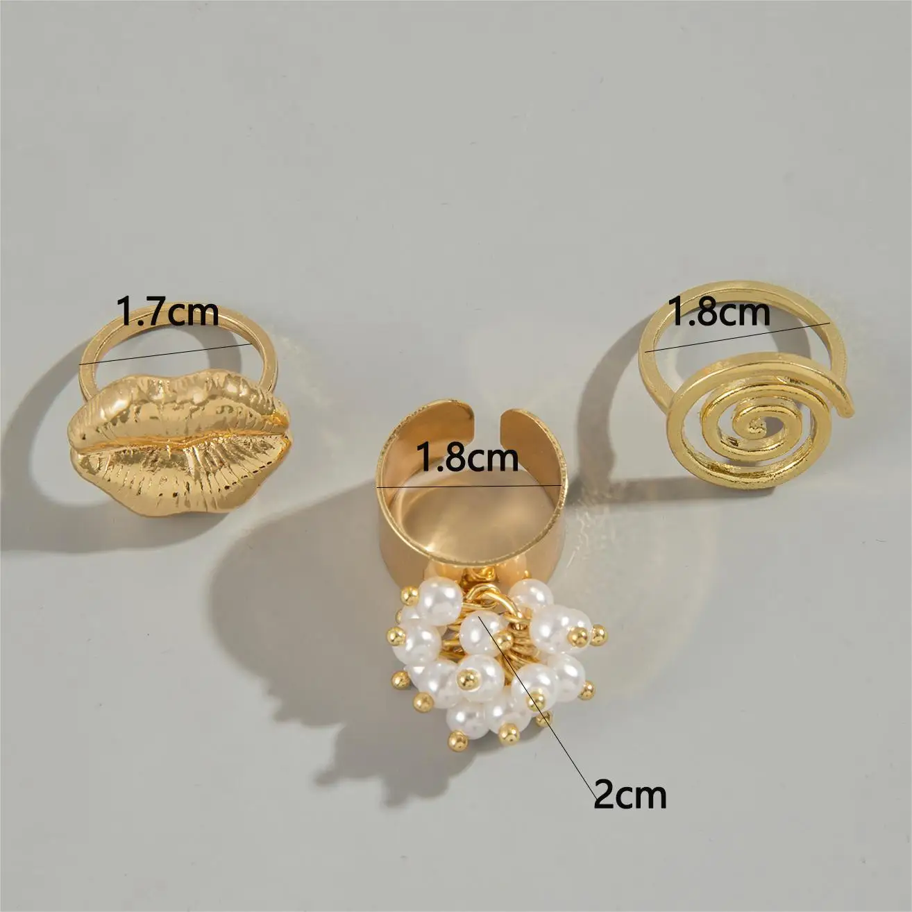 Fleepmart Luxury Gold Color Pearl Stone Mouth Finger Ring Sets for Women Trendy Lrregular Rings Set Jewelry Party 3pcs/Set