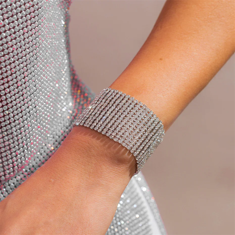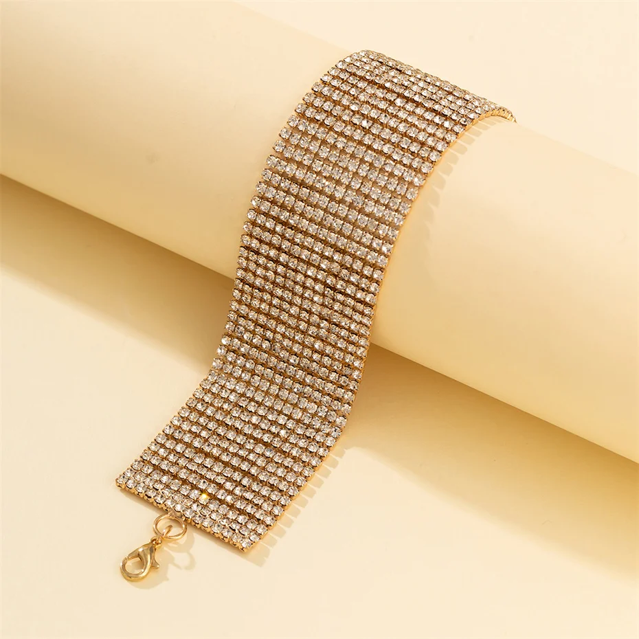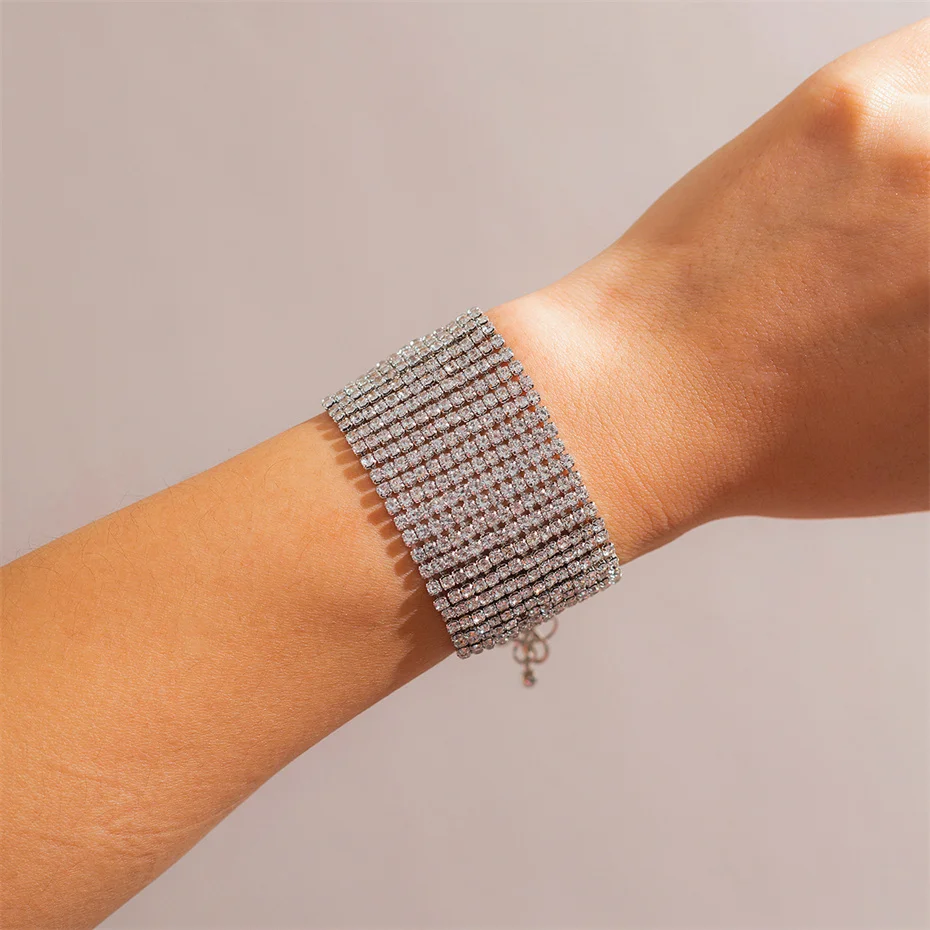 Fleepmart Luxury Goth Full Iced Out Rhinestone Adjustable Chain Bracelet for Women 2024 Trend Wed Bridal Creative Bangles Couple Jewelry