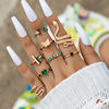 Fleepmart Luxury Green Crystal Stone Snake Joint Ring Sets Pretty Butterfly Geomtry Open Ring Jewelry for Women 8pcs/sets