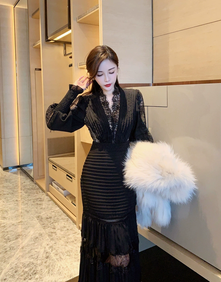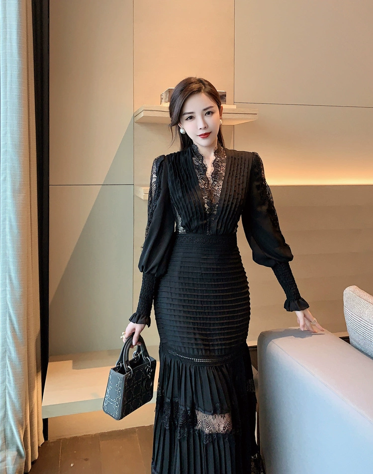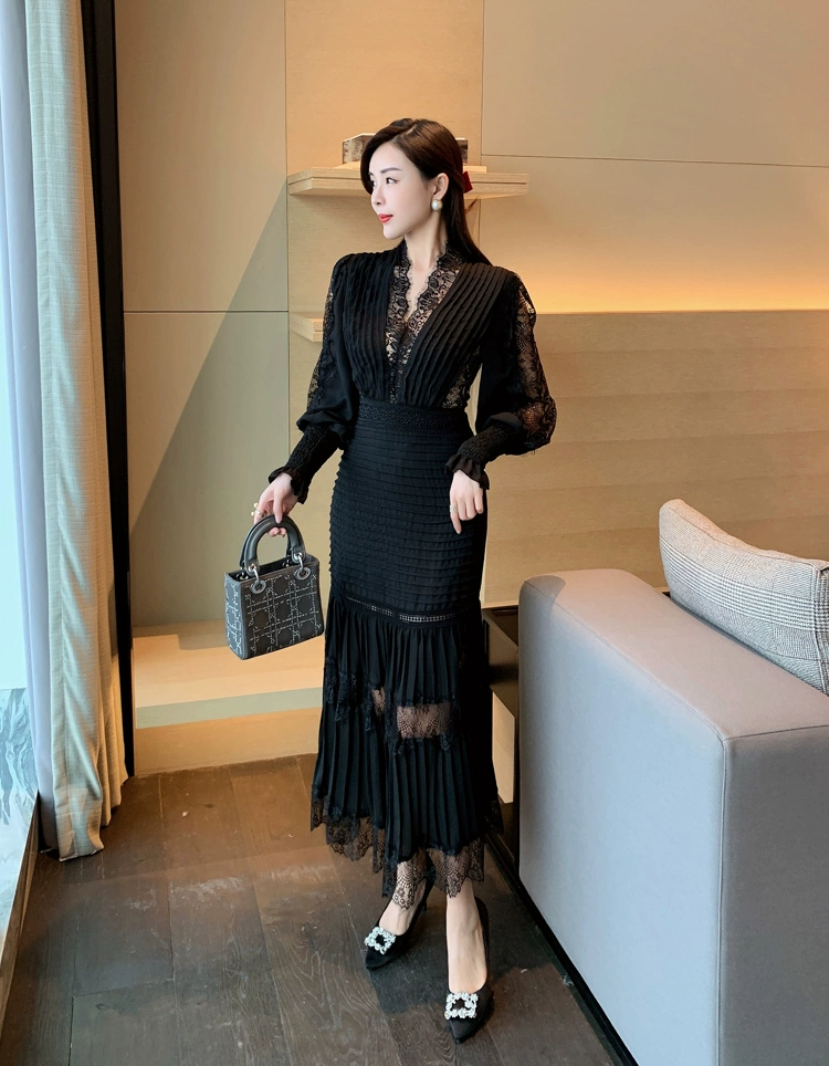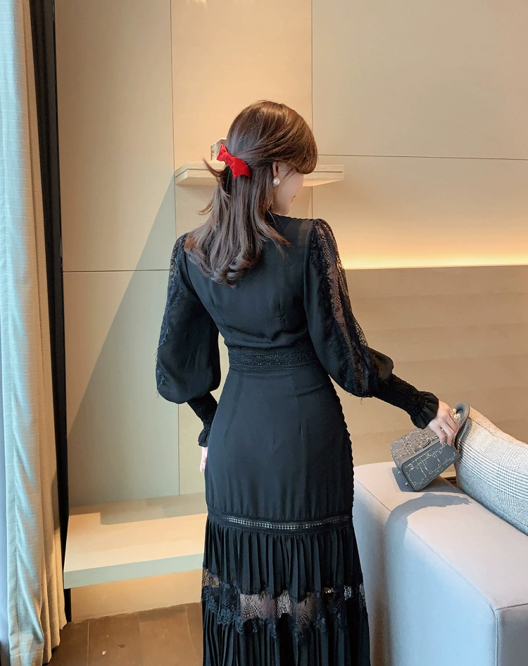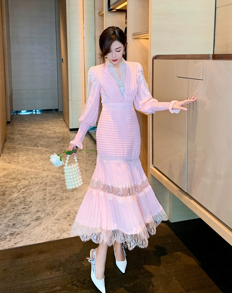 Fleepmart Luxury Long Lantern Sleeve Patchwork Lace Embroidery Dresses Women Party Elegant Spring Boho High Waist 2021 Dress