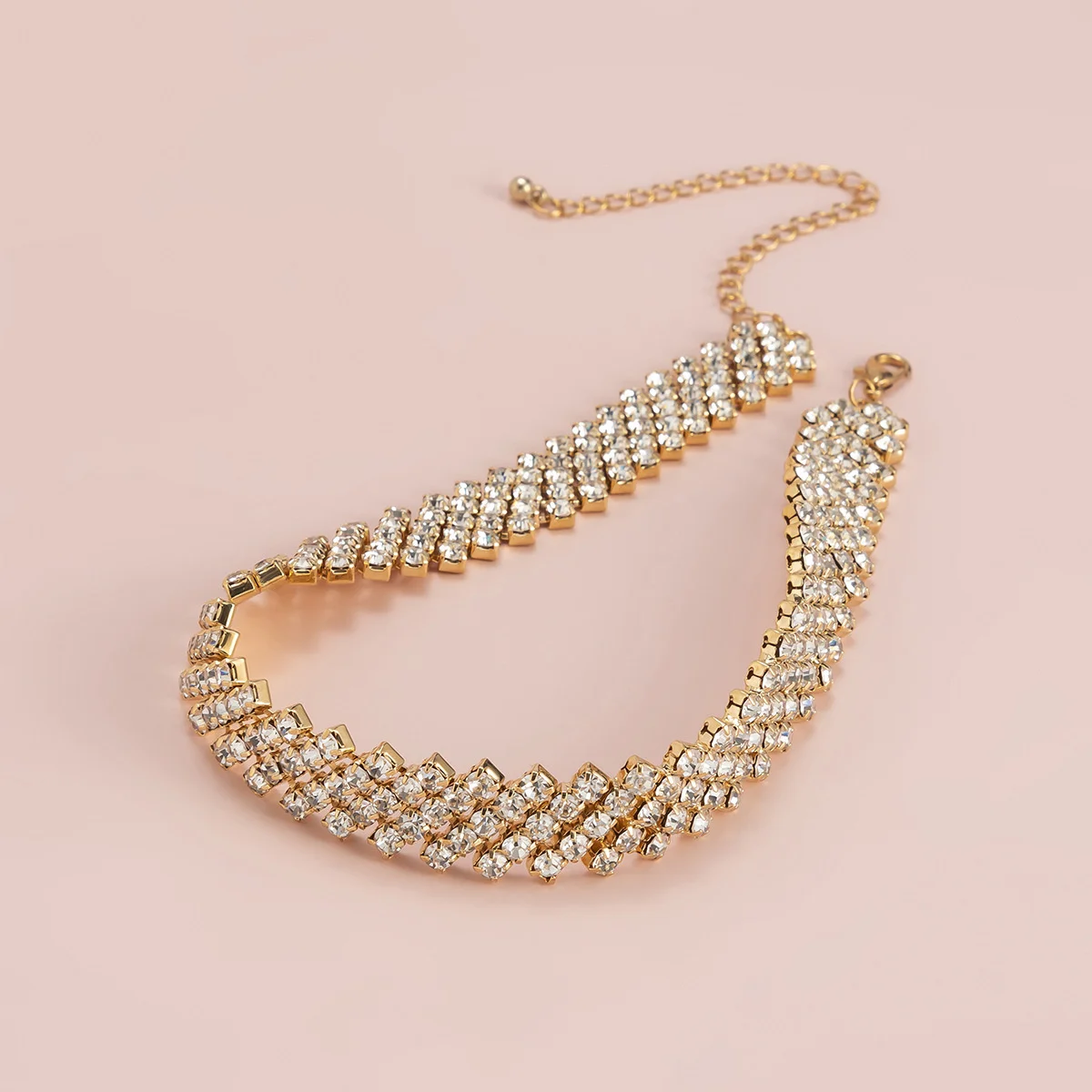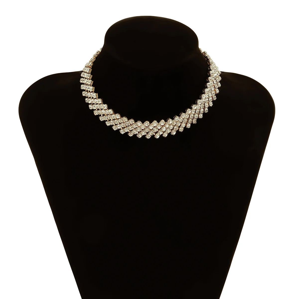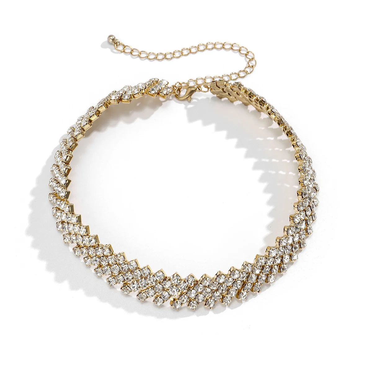 fleepmart Luxury Multi Row Rhinestones Short Choker Necklaces Shiny Crystal Necklaces Collar for Women Neck Wedding Jewelry