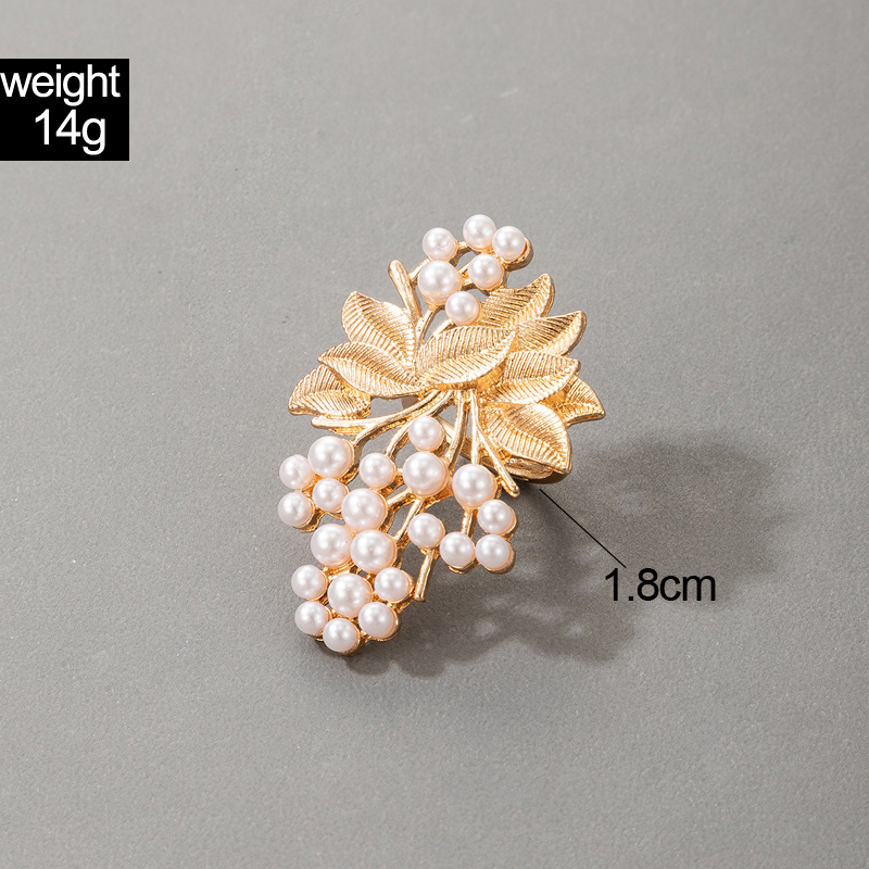 Fleepmart Luxury Pearl Stone Big Flowers Joint Ring for Women 2022 New Gold Color Alloy Metal Leaf Party Jewelry Anillo