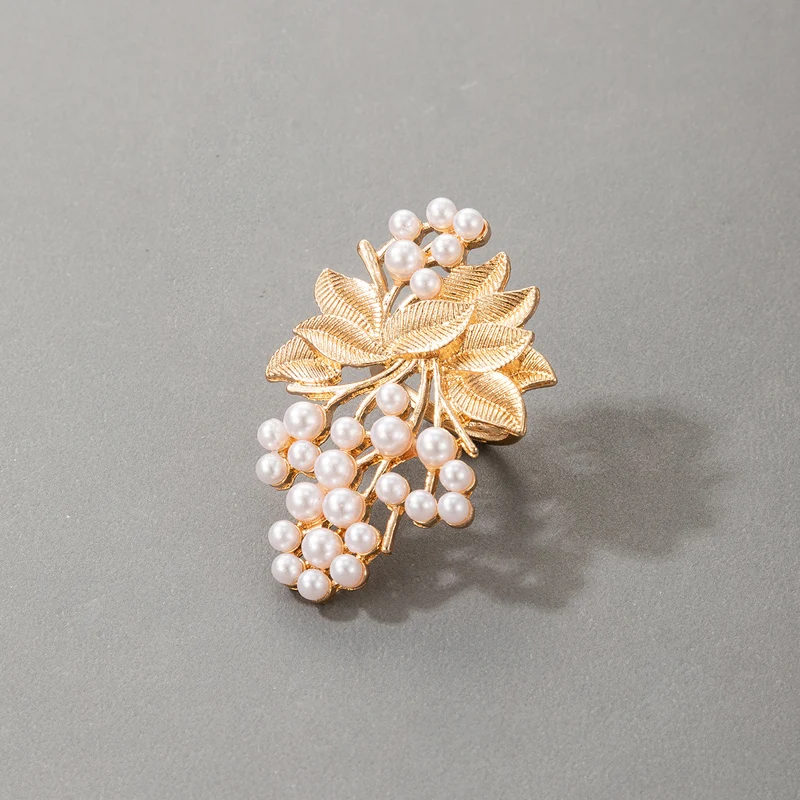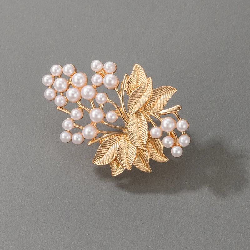 Fleepmart Luxury Pearl Stone Big Flowers Joint Ring for Women 2022 New Gold Color Alloy Metal Leaf Party Jewelry Anillo