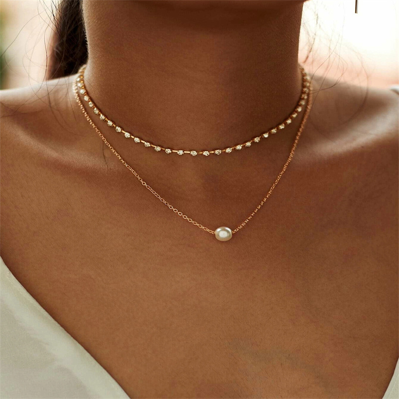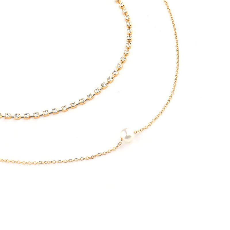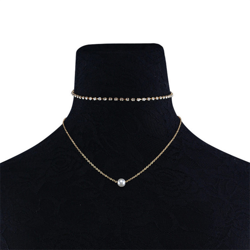 Fleepmart Rhinestone Chain Pearl Pendant Women Aesthetics Elegant Trend Clavicle Chain Choker Collar Luxury Jewelry