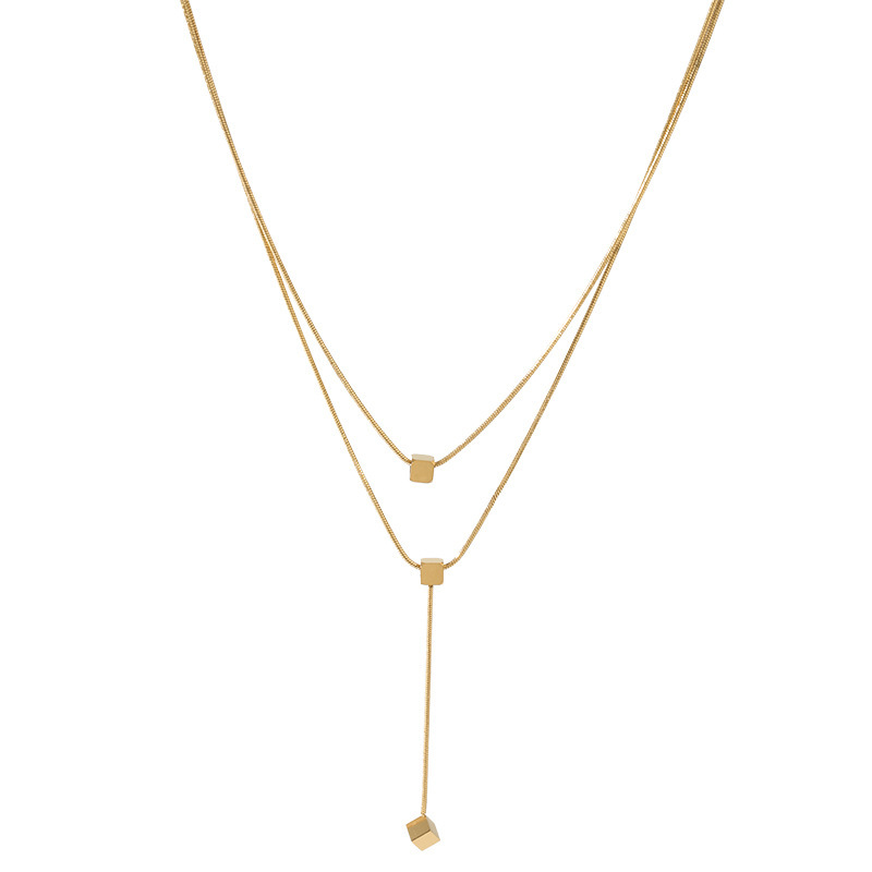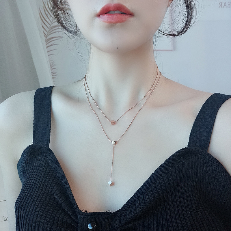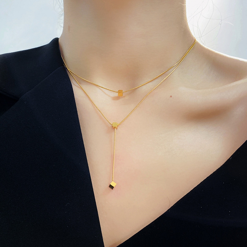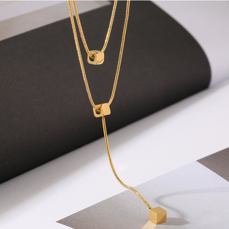 Fleepmart Luxury Stainless Steel Necklace Double Layer Small Square Rose Gold Necklace For Women Jewelry Gifts