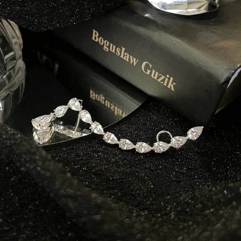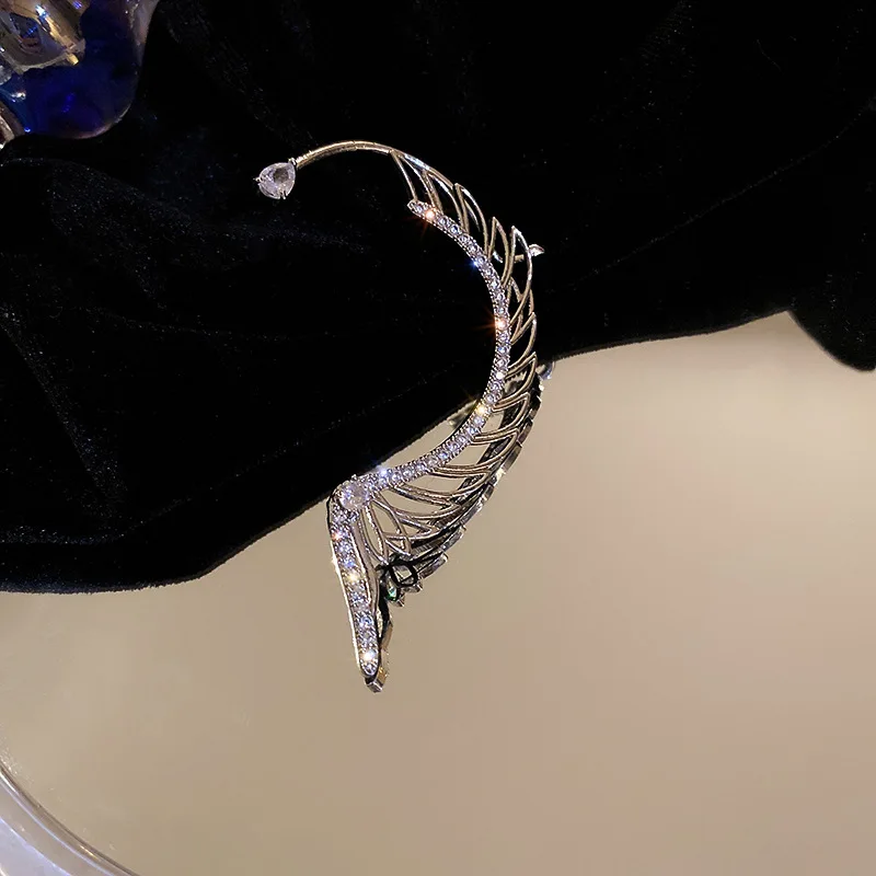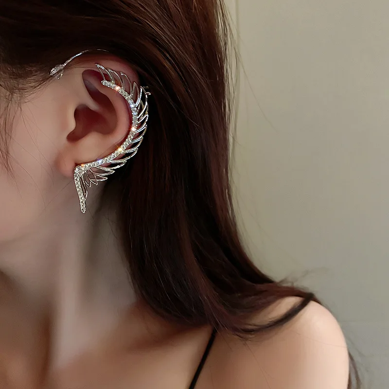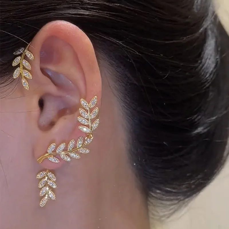 Fleepmart Luxury Trendy Zircon Leaf Gold Silver Color Non Piercing Ear Cuff Earrings Korean Rhinestone Wedding Ear Cuff Earrings Jewelry
