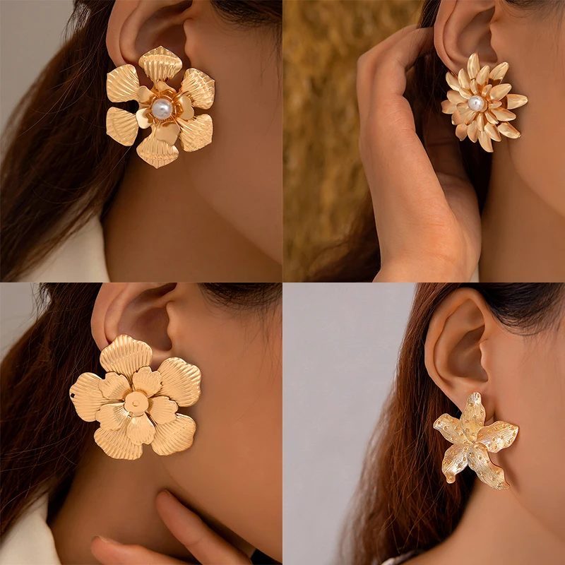 Fleepmart Luxury Vintage Eye Flower Butterfly Earrings for Women Pearl Temperament Geometric Alloy Metal Jewelry Party Gift