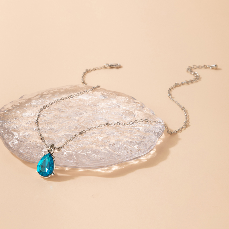 Fleepmart Luxury Water Drop Crystal Stone Pendant Neckalce for Women Elefant Silver Alloy Metal Wedding Jewelry чокер